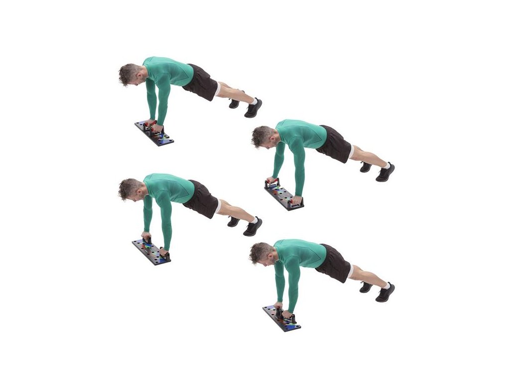 - při umístění podpěr do červených otvorů budete během klikování procvičovat ramena a prsní svaly