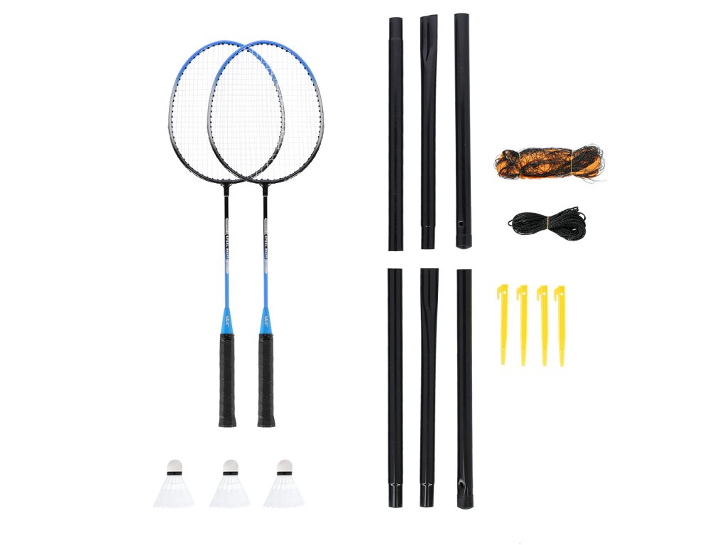 Součástí sady jsou 2 ocelové rakety, 3 nylonové letky, 2 skládací sloupky, nylonová síť, napínací šňůry, 4 kolíky a praktický obal, do kterého můžete celou sadu zabalit a uskladnit anebo si ji vzít například s sebou k vodě.