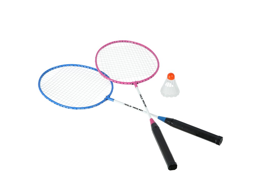 Sada 2 dadmintonových raket a nylonové letky NILS NRZ001 růžovo-modrá