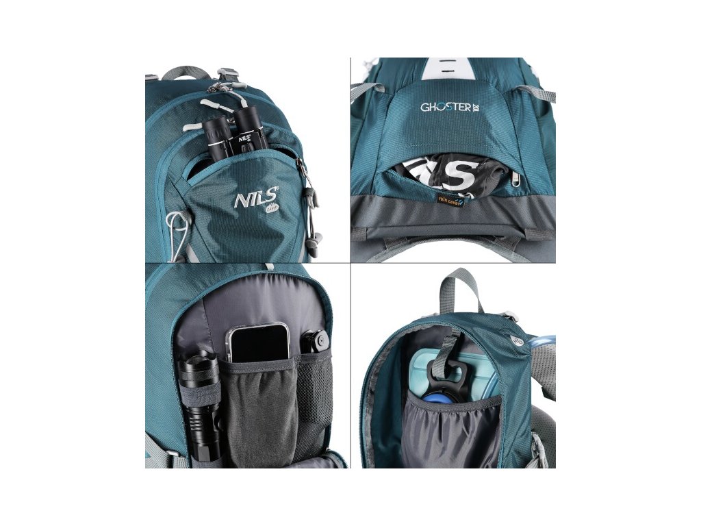 Model Ghoster má polstrované ramenní popruhy, které je možné sepnout výškově nastavitelným hrudním řemínkem s plastovou přezkou a bederní popruh, který pomáhá rovnoměrně rozložit hmotnost batohu i při intenzivních aktivitách. Mezi ramenními popruhy se nachází poutko pro přenášení batohu v ruce. Kromě toho má batoh Ghoster samostatnou kapsu na hydrovak (není součástí balení), četné kapsy a přihrádky, které umožňují intuitivní uspořádání obsahu. To nejen zvyšuje organizovanost, ale také poskytuje snadný přístup ke všem potřebným věcem, aniž byste museli prohledávat celý batoh.