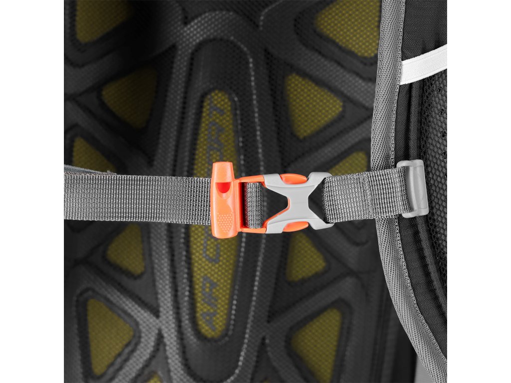 Na přezce hrudního popruhu je integrovaná záchranná píšťalka pro zvýšení bezpečnosti v případě nouze. Bederní pás nejen rovnoměrně rozkládá hmotnost, ale také stabilizuje batoh a navíc nabízí kapsy na drobnosti, jako je svačina, klíče nebo telefon.