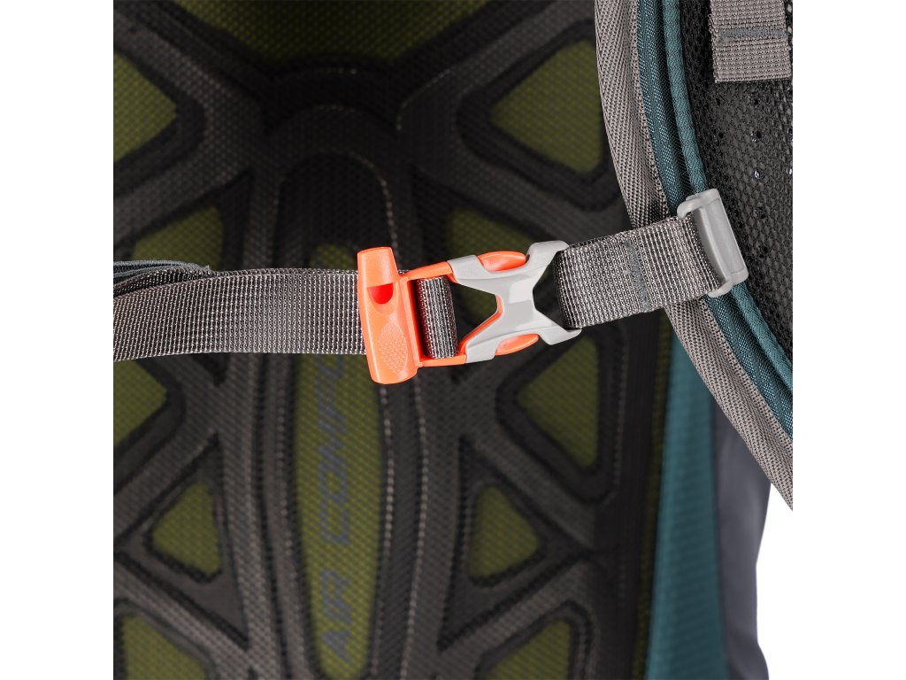 Na přezce hrudního popruhu je integrovaná záchranná píšťalka pro zvýšení bezpečnosti v případě nouze. Bederní pás nejen rovnoměrně rozkládá hmotnost, ale také stabilizuje batoh a navíc nabízí kapsy na drobnosti, jako je svačina, klíče nebo telefon.