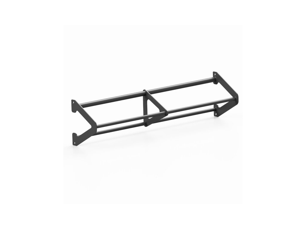 Trojitá hrazda disponuje jednou příčkou o průměru 48 mm a dvěmi příčkami o průměru 33 mm. Ke konstrukci se montuje pomocí 4 ks dodávaných šroubů. Po dotažení je hrazda ideální pro nácvik přítahů jak podhmatem, tak nadhmatem. Díky různým průměrům jde měnit náročnost přítahů.