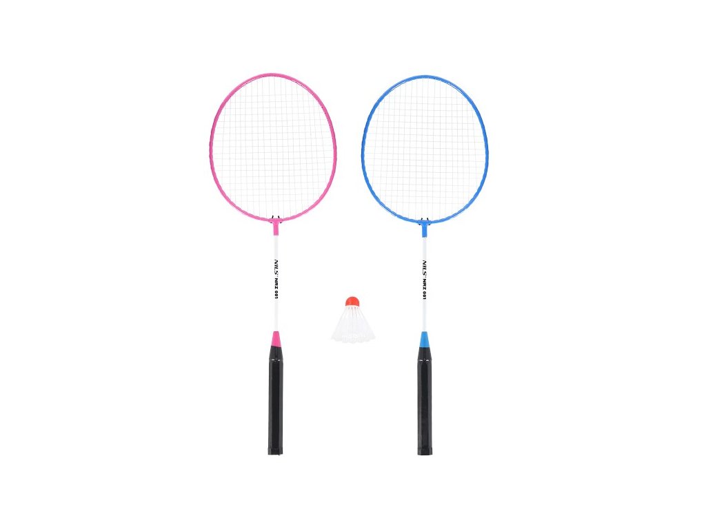 Sada 2 dadmintonových raket a nylonové letky NILS NRZ001 růžovo-modrá