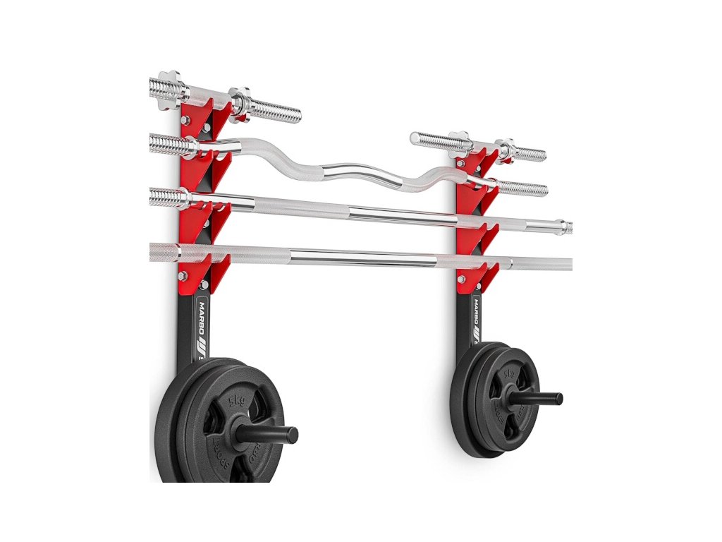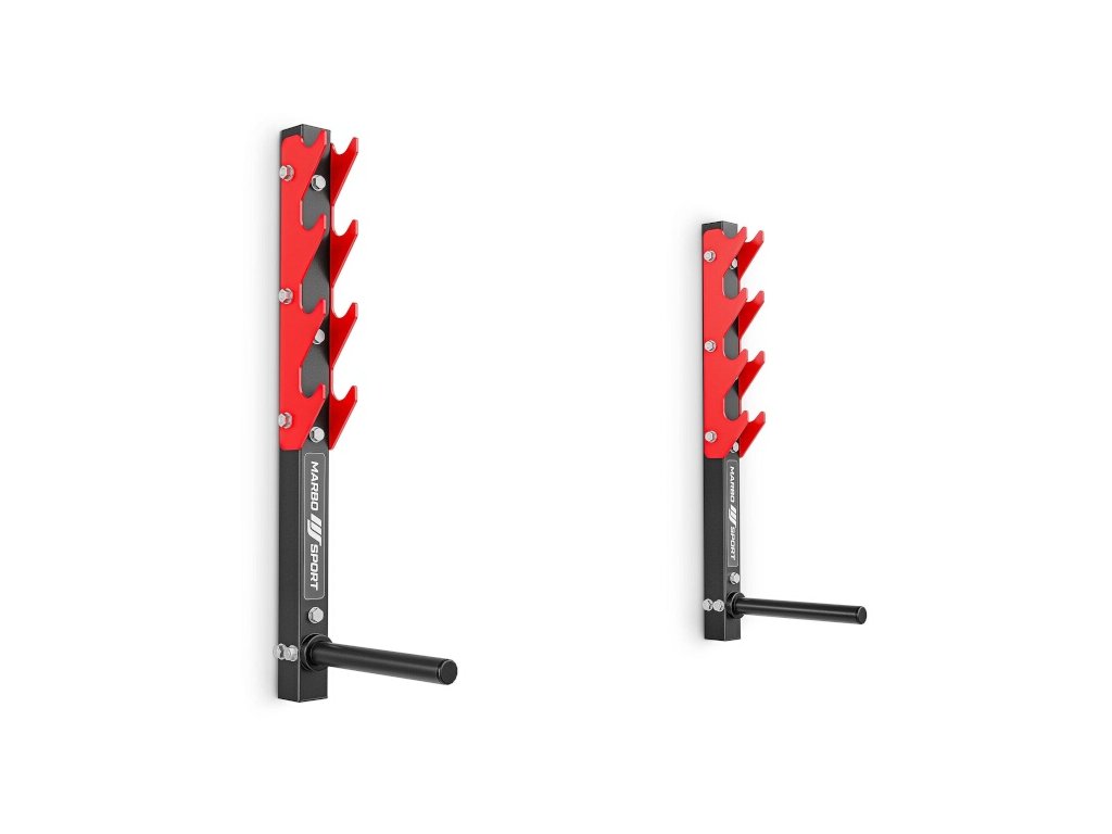 Držák na osy a závaží Marbo Sport MH-S208 je funkční a bezpečné řešení pro odkládaní kotoučů, činek a vzpěračských os o celkové hmotnosti až 200 kilogramů.