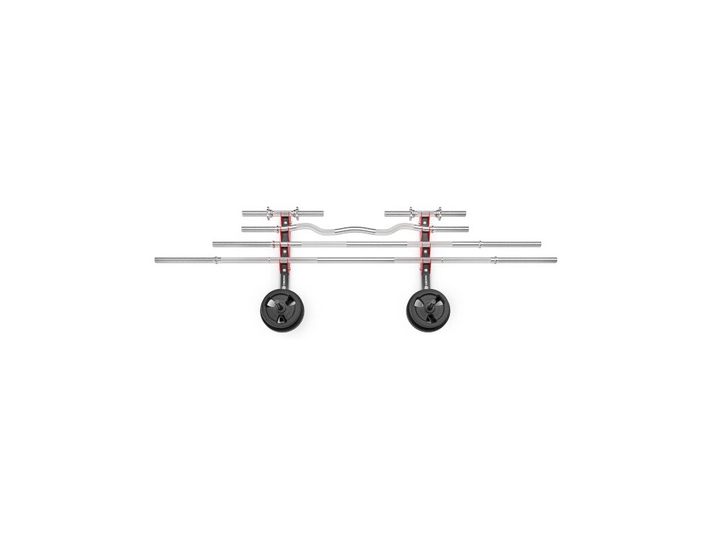 Konstrukčně jde o 2 kusy ocelových profilů určených k montáži na zeď, kdy se každý profil připevní pomocí 4 kotev. Kotvící materiál není součástí dodávky a je nutné zvolit vhodný druh podle materiálu zdi. Po montáži získáme 4 páry držáků na osy a 2 trny pro odkládání závaží. Do držáku tedy můžeme odložit až 4 obouruční osy a nebo až 8 jednoručních hřídelí. Trny pro odkládání závaží mají délku 21 centimetrů a průměr 2,5 centimetru.