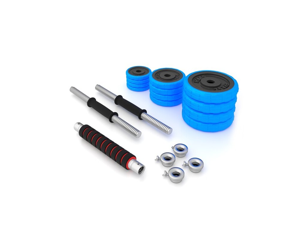 Činky jsou vyrobeny z vysoce kvalitní, lité oceli, která je zárukou dlouhé životnosti. Kotouče jsou opatřeny gumovým návlekem, který chrání jak činky, pak podlahu před poškozením při neopatrném odložení. Proti posunutí závaží se činky zajišťují šroubovacími zámky, které jsou dodatečně jištěny šroubem.