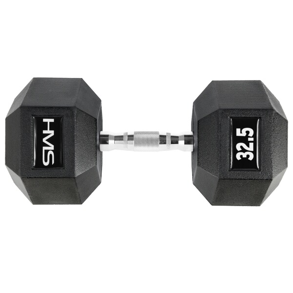 32,5 kilogramová jednoruční, šestihranná činka určená pro profesionální použití jak doma tak v posilovně. Šestihranný tvar zamezuje nechtěnému pohybu činky při jejím odložení a pogumování prodlužuje její životnost. Chromovaný úchop je opatřen rádlováním pro jistější držení.