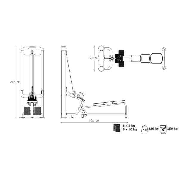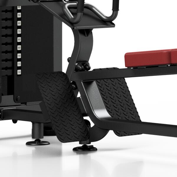 Dolní kladka MARBO MP-U207 je nekompromisní, profesionální vybavení pro Vaší posilovnu. Pro výrobu byly zvoleny ocelové profily 120x60x3mm a 80x40x3mm, které zaručují nečekanou trvanlivost. Zátěž tvoří 8ks 5kg a 8ks 10kg cihel. Celková váha závaží dodávána se strojem je tedy 120kg a jde rozšířit až na 160kg. Tichý chod zajištuje zakrytování černým plastem, z přední části je kryt opatřen průhledem pro snadné nastavení požadovaného počtu cihel. U kladky máte k dispozici pogumovanou plochu pro odložení adaptéru po cvičení. Polstrovaní je ze syntetické kůže sešité režnou nití značky COATS vyplněné tvrdou pěnou, to celé ja na 3mm hrubé, ocelové desce. Pro věčí efektivitu cvičení je kladka vybavena velkými, drážkovanými opěrami nohou. Stroj je navíc opatřen velikou samolepkou, která instruuje cvičence, jaké cviky jdou na stroji provádět a které skupiny svalů daný cvik posiluje.