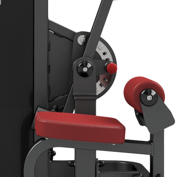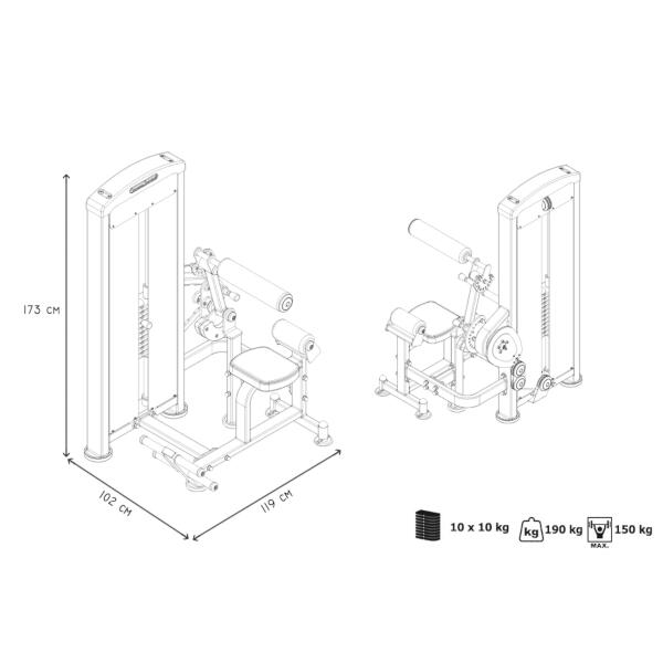 Posilovač břišních a zádových svalů MARBO MP-U220 je nekompromisní, profesionální vybavení pro Vaší posilovnu. Pro výrobu byly zvoleny ocelové profily 100x50x3mm a 80x40x3mm, které zaručují nečekanou trvanlivost. Zátěž tvoří 10ks 10kg cihel. Celková váha závaží dodávána se strojem je tedy 100kg a je možné ji rozšířit až na 160kg. Vhodné nastavení výchozí polohy ramen je velice jednoduché a intuitivní díky červeným, pneumatickým jistícím kolíkům. Hlavní rameno má 6 poloh a válec má 8 poloh nastavení. Napínaní lanek se provádí regulací 4 šroubů na hlavním vodícím kole. Odpadá tak složité rozebírání stroje. Polstrovaní je ze syntetické kůže sešité režnou nití značky COATS vyplněné tvrdou pěnou, to celé ja na 3mm hrubé, ocelové desce. Tichý chod zajištuje zakrytování černým plastem, z přední části je kryt opatřen průhledem pro snadné nastavení požadovaného počtu cihel. Stroj je navíc opatřen velikou samolepkou, která instruuje cvičence, jaké cviky jdou na stroji provádět a které skupiny svalů daný cvik posiluje.