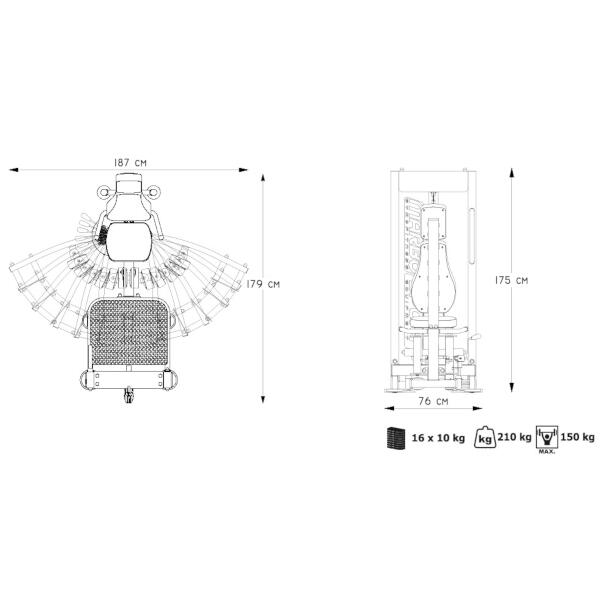 Roznožování a snožování MARBO MP-U218 je nekompromisní, profesionální vybavení pro Vaší posilovnu. Pro výrobu byly zvoleny ocelové profily 120x60x3mm a 80x40x3mm, které zaručují nečekanou trvanlivost. Zátěž tvoří 16ks 10kg cihel. Celková váha závaží dodávána se strojem je tedy 160kg. Stroj je řešen jako 2v1 a jednoduchým přepnutím páky a otočením opěrek změníte chod stroje z odtahování nohou od sebe na přitahování nohou k sobě. Polstrovaní je ze syntetické kůže sešité režnou nití značky COATS vyplněné tvrdou pěnou, to celé ja na 3mm hrubé, ocelové desce. Tichý chod zajištuje zakrytování černým plastem, z přední části je kryt opatřen průhledem pro snadné nastavení požadovaného počtu cihel. Stroj je navíc opatřen velikou samolepkou, která instruuje cvičence, jaké cviky jdou na stroji provádět a které skupiny svalů daný cvik posiluje.