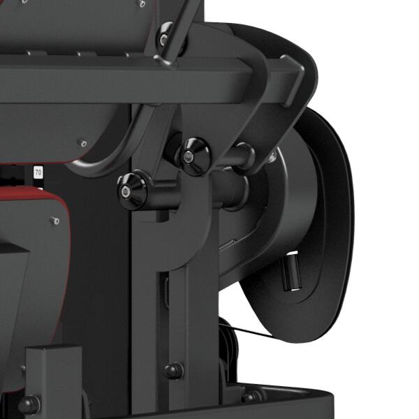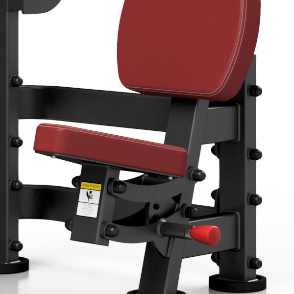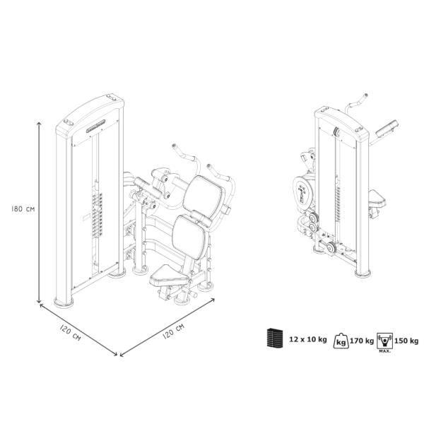 Stroj na posílení břišních svalů MARBO MP-U223 je nekompromisní, profesionální vybavení pro Vaší posilovnu. Pro výrobu byly zvoleny ocelové profily 120x60x3mm a 80x40x3mm, které zaručují nečekanou trvanlivost. Zátěž tvoří 12ks 10kg cihel. Celková váha závaží dodávána se strojem je tedy 120kg a je možné ji rozšířit až na 160kg. Regulace výšky sedadla je nastavitelná ve čtyřech úrovních za použití červeného, pneumatického jistícího kolíku. Napínaní lanek se provádí regulací 4 šroubů na hlavním vodícím kole. Odpadá tak složité rozebírání stroje. Polstrovaní je ze syntetické kůže sešité režnou nití značky COATS vyplněné tvrdou pěnou, to celé ja na 3mm hrubé, ocelové desce. Tichý chod zajištuje zakrytování černým plastem, z přední části je kryt opatřen průhledem pro snadné nastavení požadovaného počtu cihel. Stroj je navíc opatřen velikou samolepkou, která instruuje cvičence, jaké cviky jdou na stroji provádět a které skupiny svalů daný cvik posiluje.