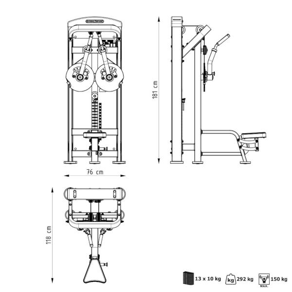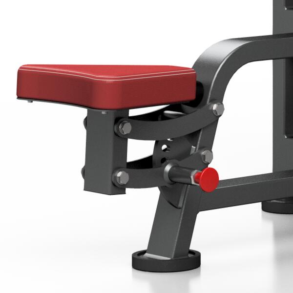 Upažování MARBO MP-U236 je nekompromisní, profesionální vybavení pro Vaší posilovnu. Pro výrobu byly zvoleny ocelové profily 120x60x3mm a 80x40x3mm, které zaručují nečekanou trvanlivost. Zátěž tvoří 13ks 10kg cihel. Celková váha závaží dodávána se strojem je tedy 130kg. Sedadlo je výškově regulovatelné ve čtyřech stupních a je podpořeno pneumatickým pístem, takže pro změnu výšky nemusíte ze stroje sesedat. Každé rameno jde nastavit do jedné ze šesti poloh. Všechny přenastavení se provádí pomocí červených, pružinových jistících kolíků. Polstrovaní je ze syntetické kůže sešité režnou nití značky COATS vyplněné tvrdou pěnou, to celé ja na 3mm hrubé, ocelové desce. Tichý chod zajištuje zakrytování černým plastem, z přední části je kryt opatřen průhledem pro snadné nastavení požadovaného počtu cihel. Stroj je navíc opatřen velikou samolepkou, která instruuje cvičence, jaké cviky jdou na stroji provádět a které skupiny svalů daný cvik posiluje.