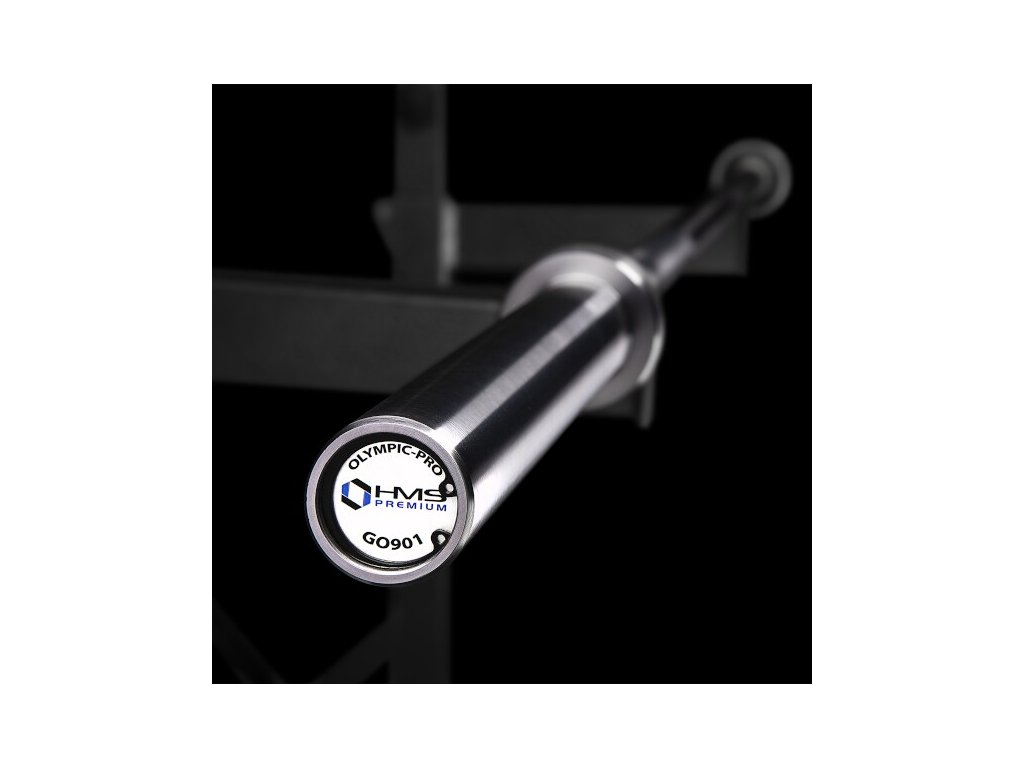 Olympijská hřídel HMS Premium GO901 je vyrobena ze speciální chromované oceli, která prošla procesem kalení. Osa GO901 se vyznačuje pevností v kombinaci s dokonalou pružností. Součástí soupravy jsou dva plastové uzávěry ZG1000. Pevné a pohodlné uchopení hřídele je zajištěno vroubkováním na povrchu. Maximální zatížení je 900 kg.