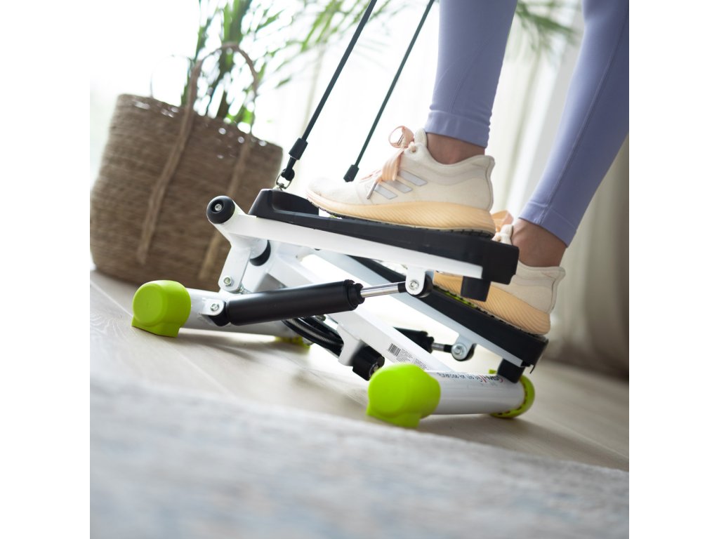 Malý a elegantní stepper, s kterým díky pravidelnému cvičení můžete získat elegantní, štíhlé a pevné hýždě. Výhodou tohoto modelu je možnost nastavení výšky kroku. Pohodlné cvičení poskytují široké neklouzavé nášlapy. Pravidelný trénink na stepprech urychlí spalování tuků na stehnech, bocích a kolem pasu. Trénink dále posiluje svaly kyčle, stehna (D quadriceps a biceps), svaly dolní končetiny, hýždě a břišní svaly. Cvičení na těchto strojích jsou vhodné pro ženy a muže všech věkových kategorií. Jde o efektivní a rychlé spalování tuků a zároveň posilování svalů a práci na zlepšení kondice.