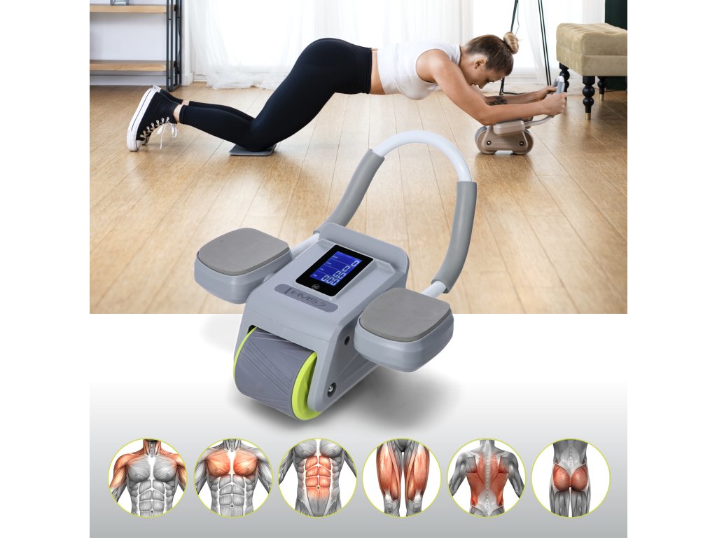 Posilovací válec na břicho HMS KA08 šedý s automatickým odskokem