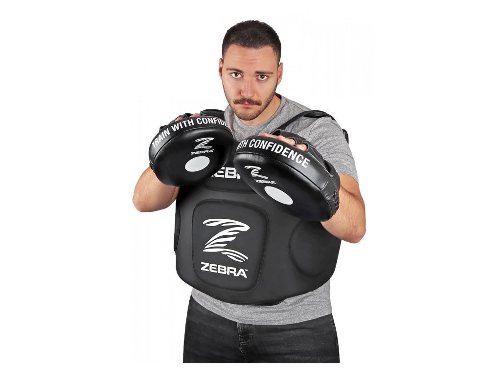 Tréninkové lapy ZEBRA PRO COACHING jsou vyrobeny z extra stabilní pravé kůže. Zakulacená plocha na uchopení uprostřed dlaně zajišťuje anatomickou polohu rukou a podporuje tak bezpečné uchycení na dlani. Střed úderové plochy "Focus" je měkčí než vnější oblast a nabízí tak realistický pocit při úderech. Otevřená rukavice na vrchní části lapy zajišťuje dobré odvětrávání a polstrovaná pás přes zápěstí umožňuje rychlé zapnutí a odepnutí lapy. Všestranné využití pro MMA, box, kickbox a další bojové sporty.