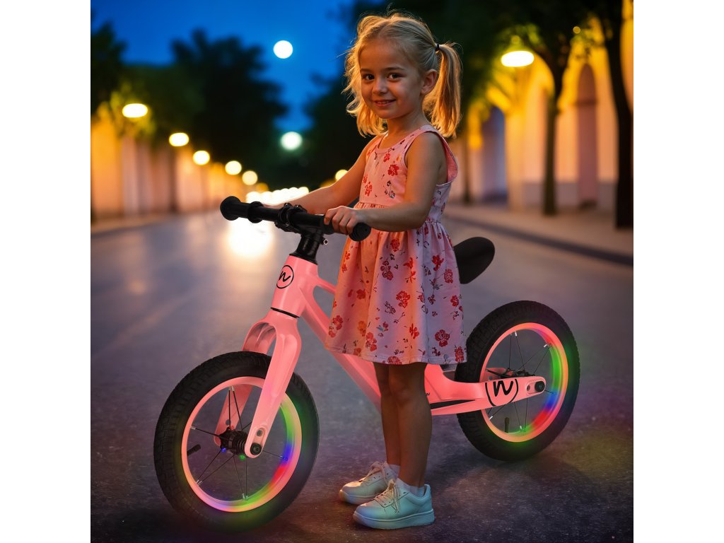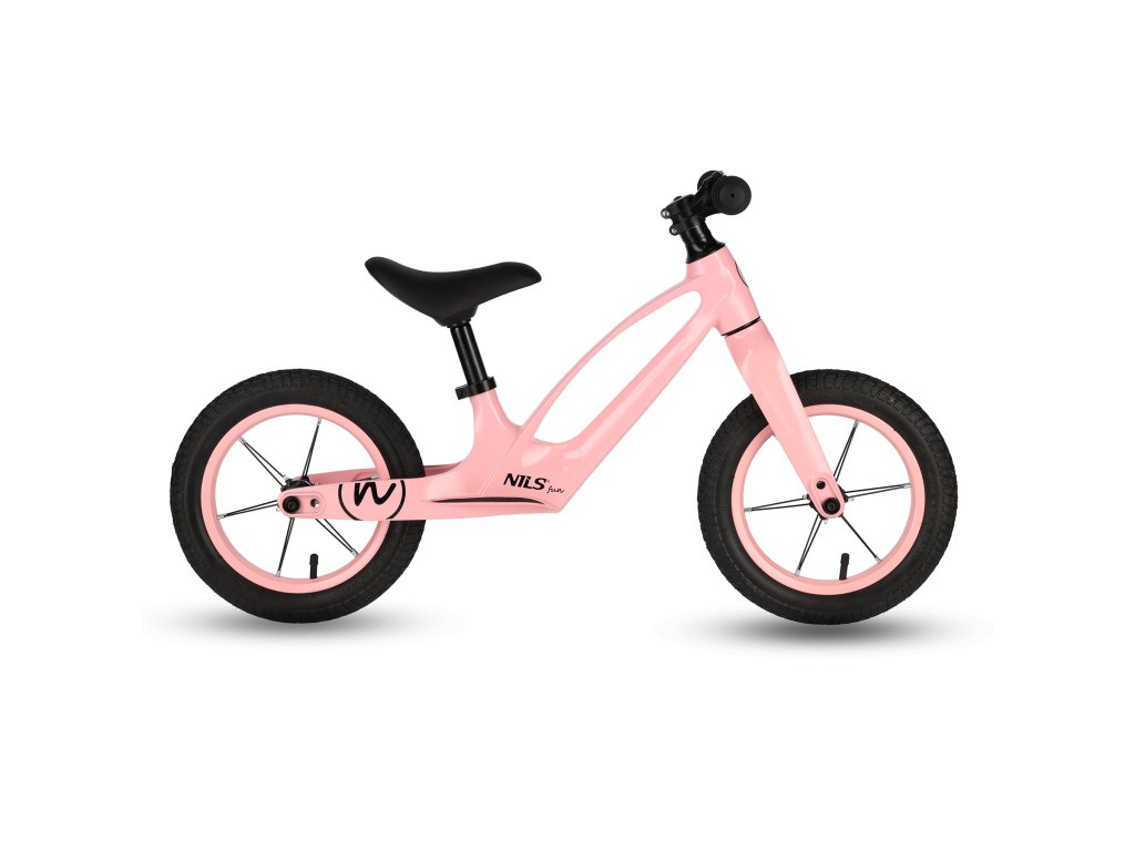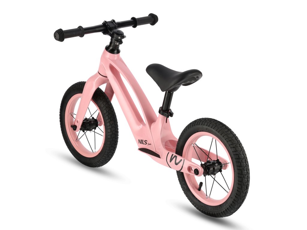 Dětské odrážedlo NILS Fun RB901 s 12" pumpovanými koly a LED růžové