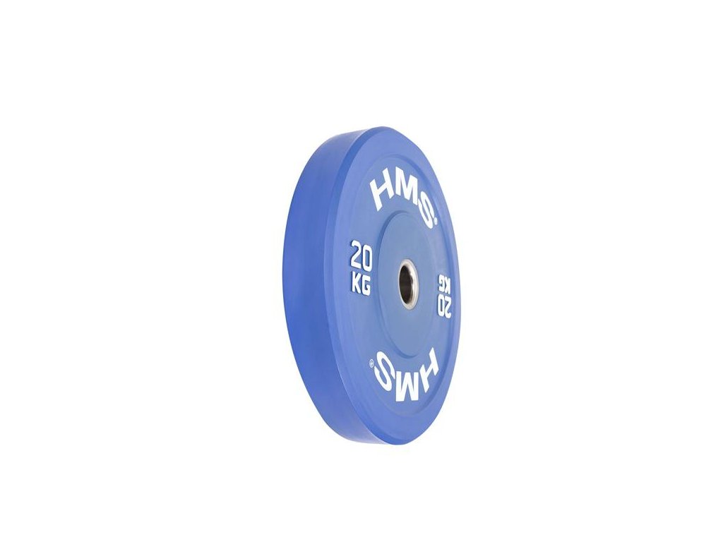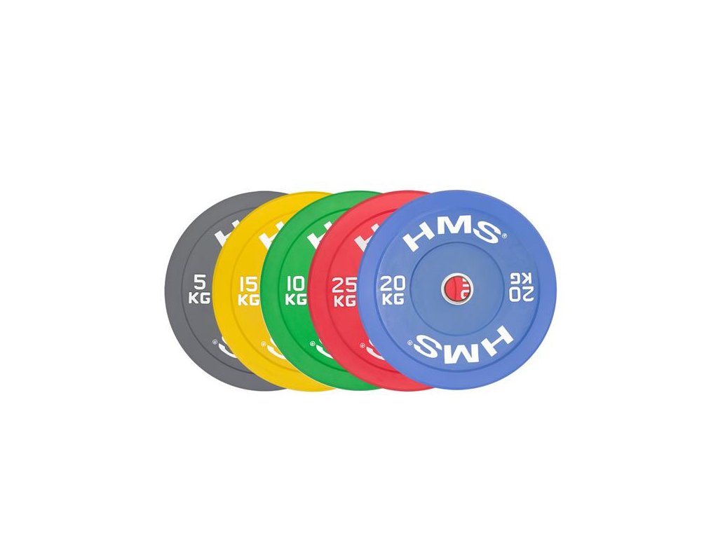 Barevný bumper kotouč HMS vhodný pro vzpěračský a crossfit trénink. Jeho hlavním parametrem je odolnost, kdy i po odhodu z velké výšky, zůstane kotouč i podloží bez známky poškození. Kotouč je určen pro olympijské osy s průměrem trnů 50 mm a je zbarvený dle závodních parametrů.