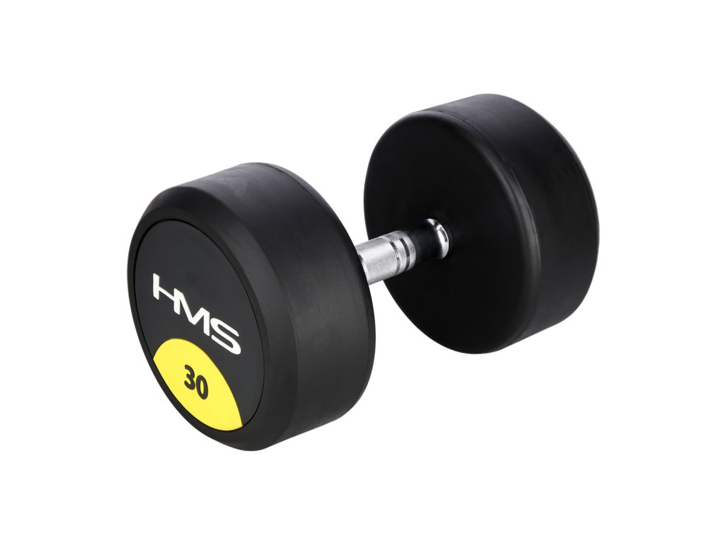 30-ti kilogramová jednoruční činka HMS HG Pro je určená pro profesionální použití jak doma tak v posilovně. Závaží tvoří litinový odlitek pokrytý silnou vrstvou gumy, která ochrání jak činku, tak podklad před poškozením. Na čelní straně je značka HMS a údaj o hmotnosti v kilogramech. Rukojeť je vyrobena z chromované oceli, pro pohodlný úchop má soudkovitý tvar s vroubkovaným povrchem.