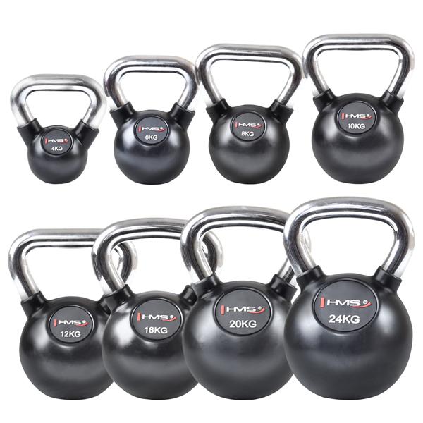 HMS Kettlebell je vyroben z vysoce kvalitní litiny pokryté vinylem a je vybaven chromovaným úchytem.