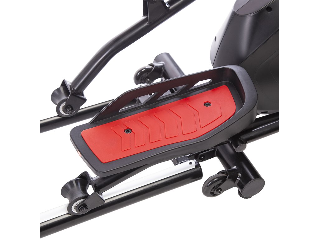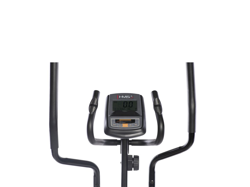 Magnetický eliptický trenažér HMS H6504 je univerzální zařízení pro celkové zlepšení zdraví, snížení tělesného tuku a zlepšení účinnosti organismu. Model H6504 je vybaven 8-mi kilogramovým setrvačníkem a manuálně ovládanou, magnetickou brzdou. Nášlapy jsou opatřeby protiskluzovou gumou pro pohodlné cvičení. Příjemnou drobností je možnost zdvihnutí lyžin pro úsporu místa, když trenažér není používán. Velký LCD displej počítače přehledně zobrazuje veškeré důležité informace během tréninku.