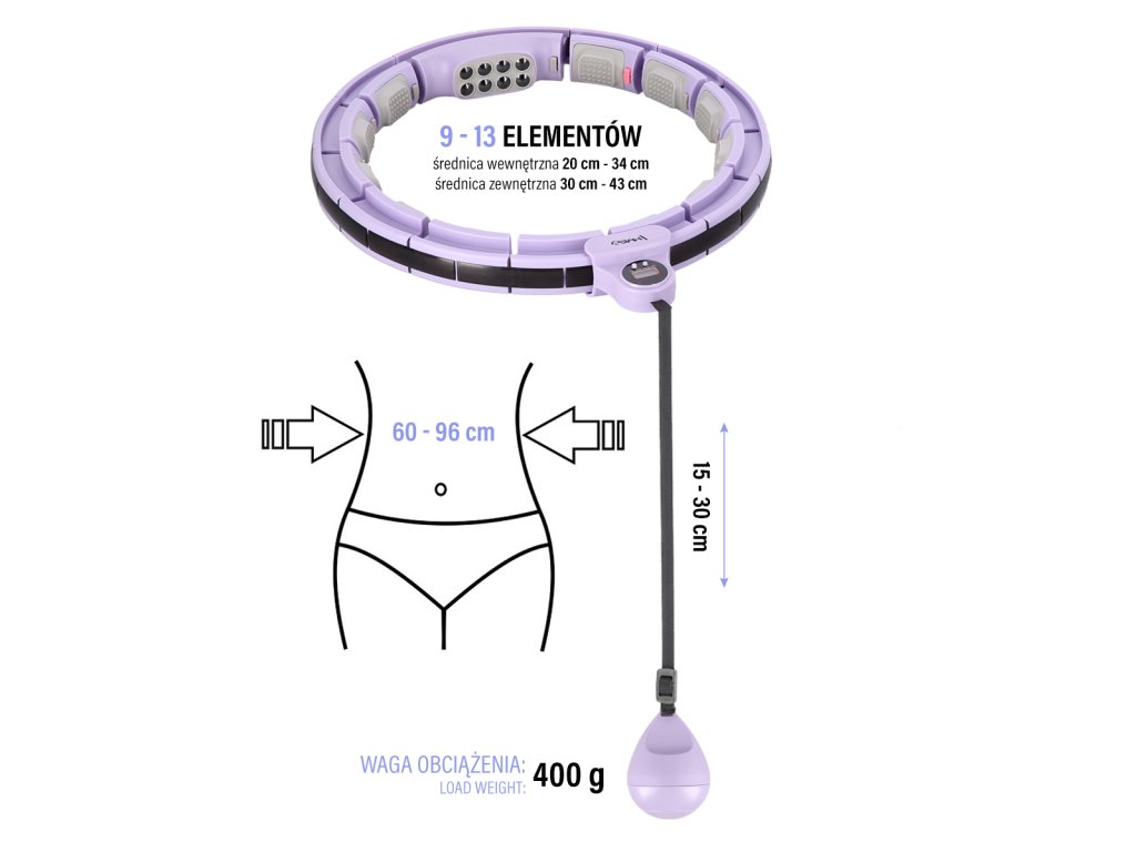 Masážní hula hoop HMS HHM13 se závažím, magnety a počítadlem fialová