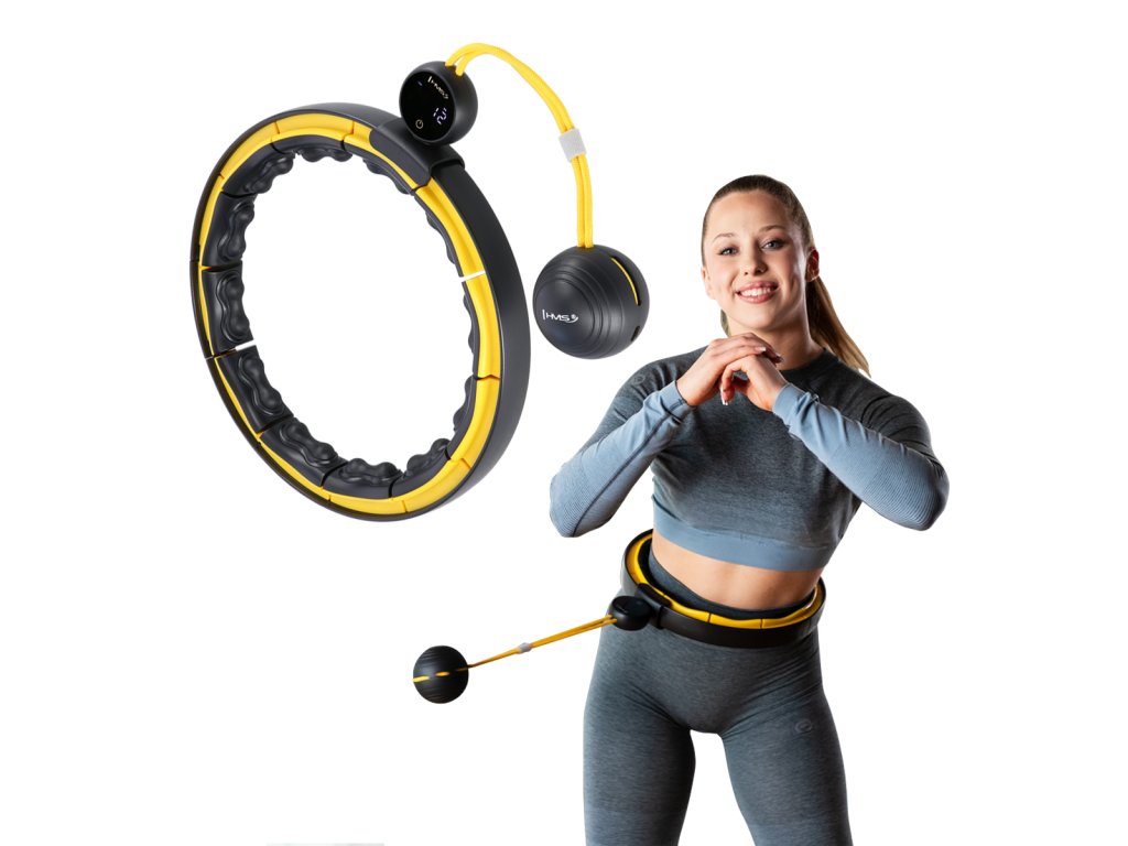 Masážní hula hoop HMS HHM21 se závažím, magnety a počítadlem černá/žlutá