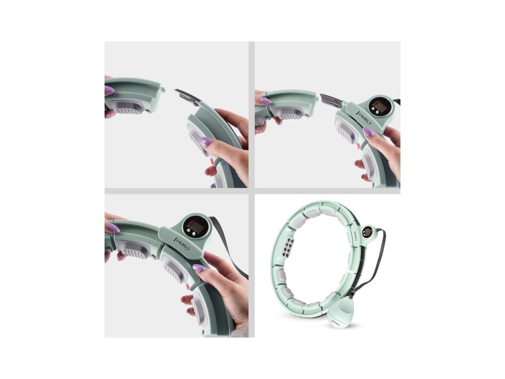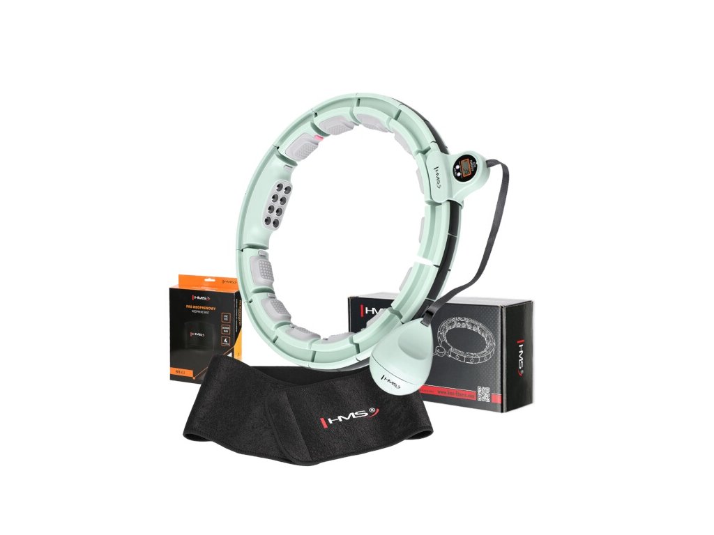 Sada masážní hula hoop HMS HHM13 se závažím, magnety a počítadlem a zeštíhlujícího pásu BR163 zelená