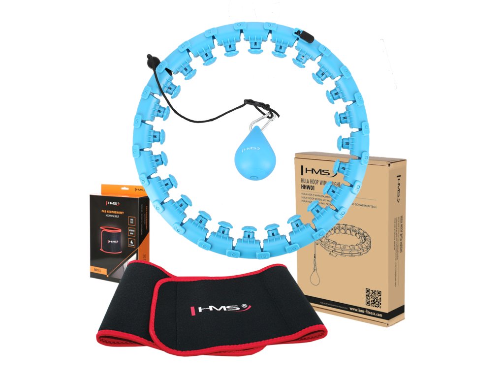 Sada masážní hula hoop HMS HHW01 se závažím a zeštíhlujícího pásu BR163 modrá