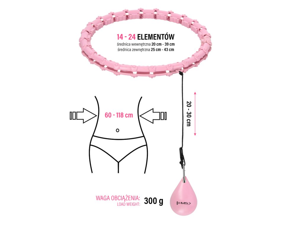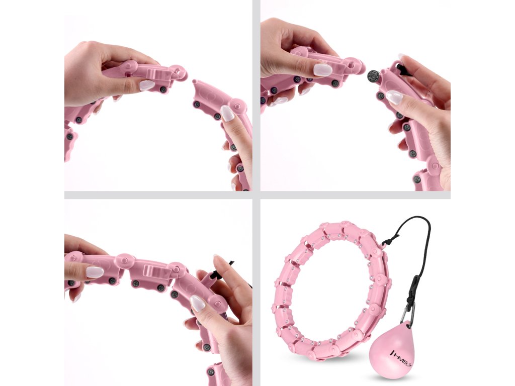 Sada masážní hula hoop HMS HHW02 se závažím a zeštíhlujícího pásu BR163 růžová