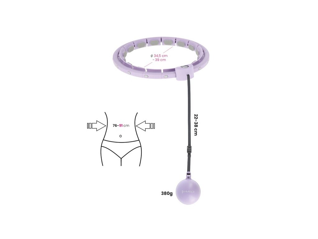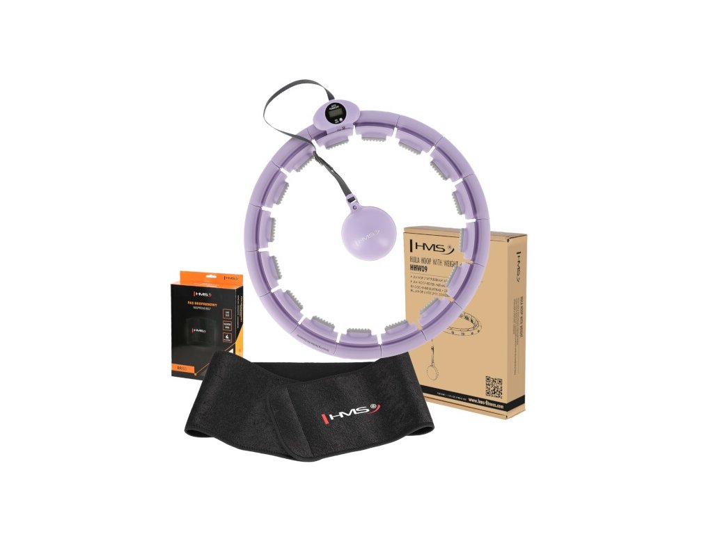 Sada masážní hula hoop HMS HHW09 se závažím a počítadlem a zeštíhlujícího pásu BR163 fialová