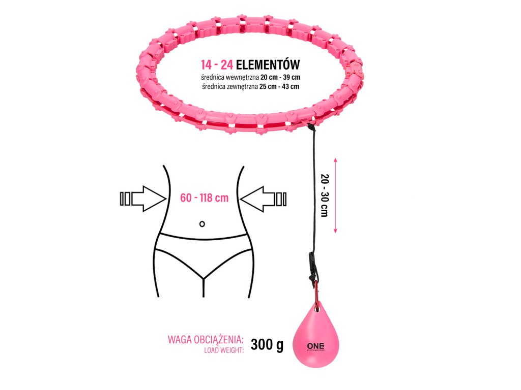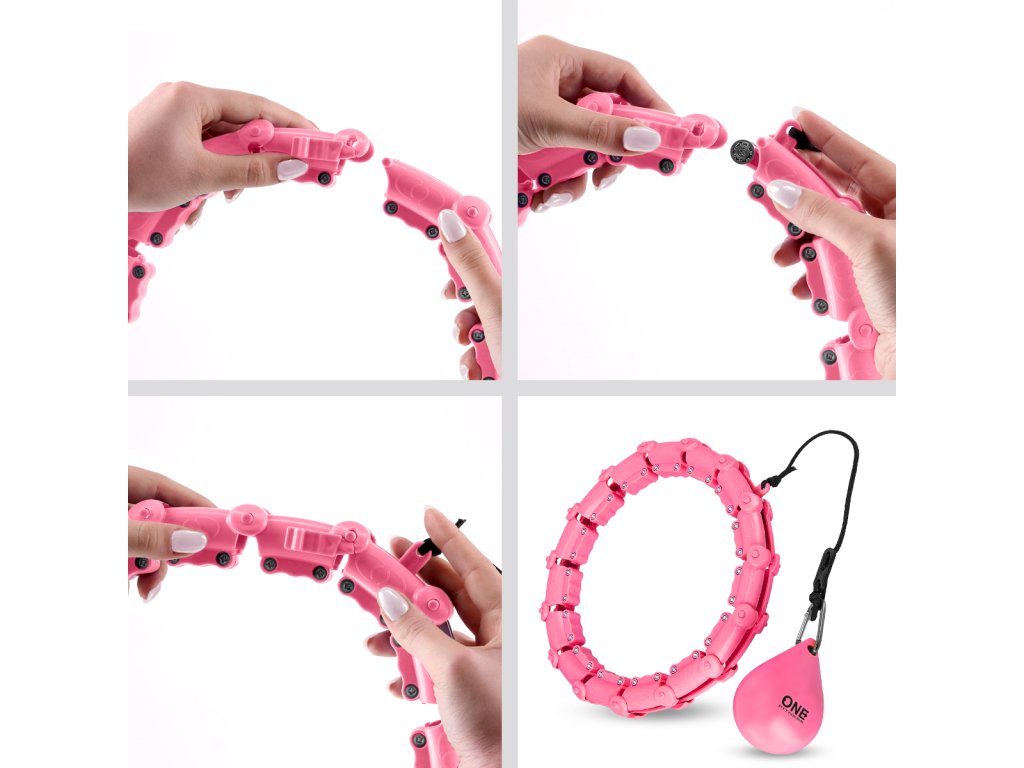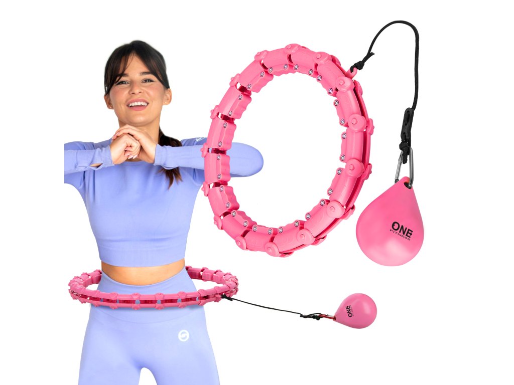 Sada masážní hula hoop ONE Fitness OHA02 se závažím a zeštíhlujícího pásu BR160 růžová