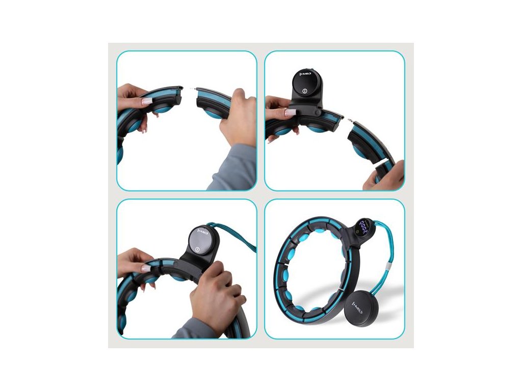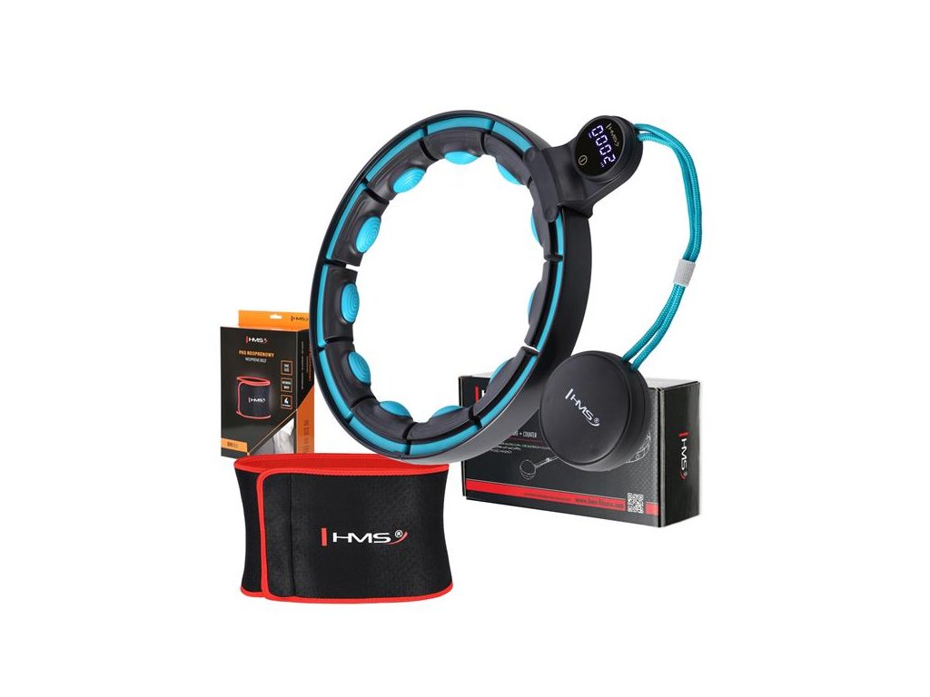 Sada masážní hula hoop se závažím HHM17 a zeštíhlujícího pásu BR163 černá/tyrkysová