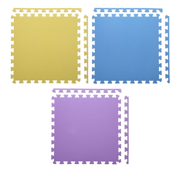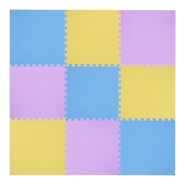 - 9 čtvercových dílů: 3 kusy žluté, 3 kusy modré, 3 kusy fialové