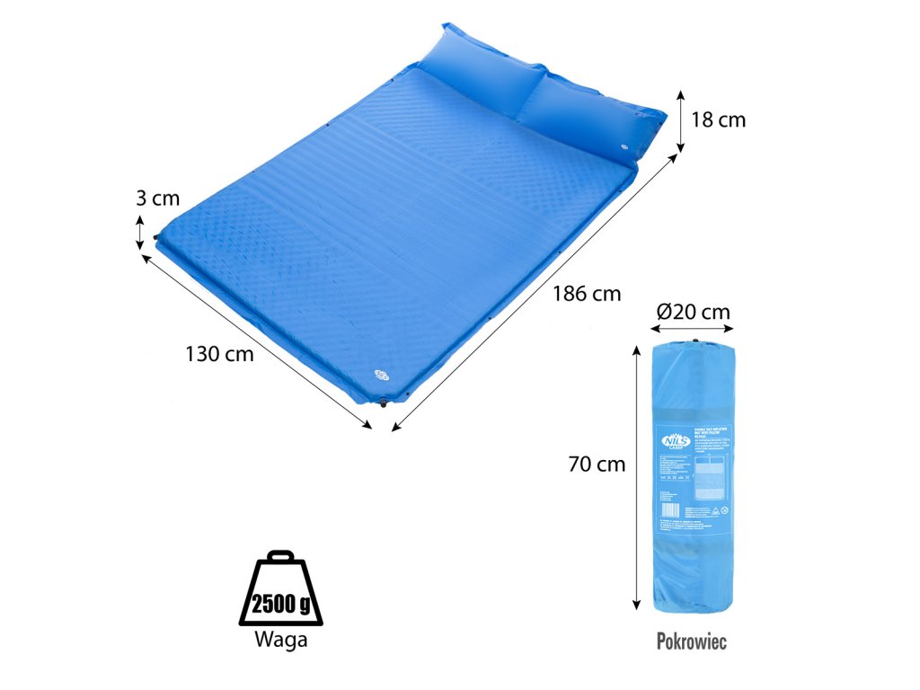 Samonafukovací dvouosobová karimatka NILS CAMP NC4060 modrá