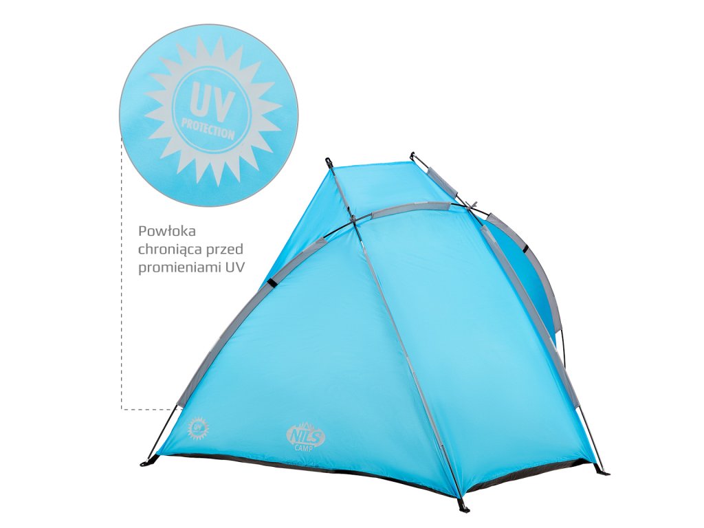 Plážový stan NILS Camp NC3039 využijete nejen během dovolené u moře, ale také na veřejném koupališti, nebo u bazénu na zahradě. Hlavní funkcí plážového stanu je ochrana před slunečními paprsky a škodlivým UV zářením. Model NC3039 odrazí až 96% UV záření.