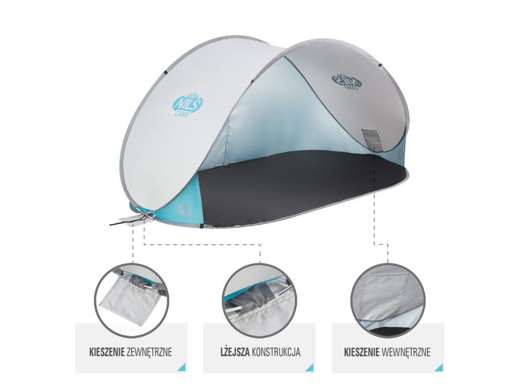 Samorozkládací plážový stan NILS Camp NC3174 šedý