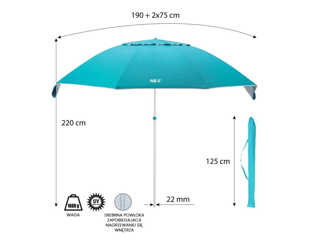 Slunečník NILS Camp NC7822 XL 190 cm tyrkysový