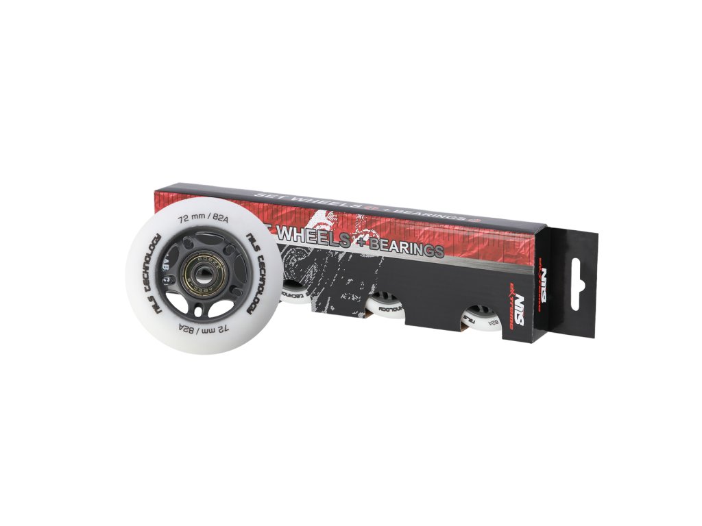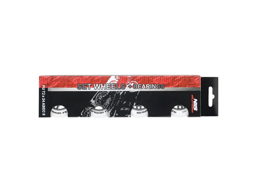 Matná kolečka NILS Extreme PU 72x24 82A s ložisky ABEC 9, bílá, 4 ks