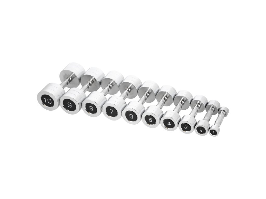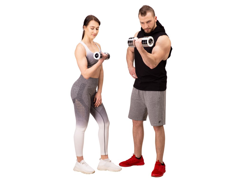 Jako materiál je použita vysoce kvalitní chromovaná ocel, která zaručuje dlouhou životnost, odolnost vůči poškození a zamezuje oxidaci. Činky jsou opatřeny mřížkovanou rukojetí pro pevný a jistý úchop.