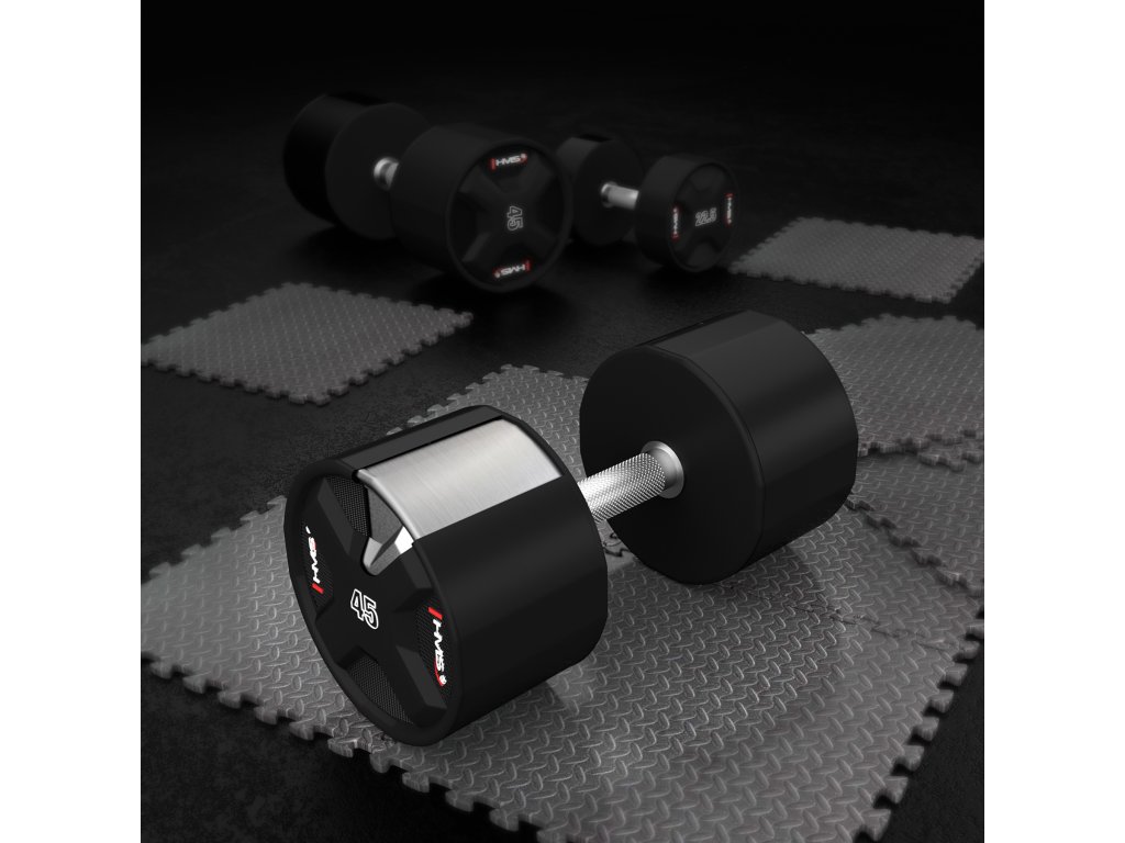 Jednoruční činky HMS HPC jsou vyrobeny z ocelového jádra potaženého litým polyuretanem (CPU). HPC jsou vybavením vytvořeným s ohledem na nejnáročnější uživatele. Výjimečná odolnost, estetické provedení a pokročilé vlastnosti z nich činí ideální volbu pro ty, kteří očekávají spolehlivost během intenzivních tréninků.