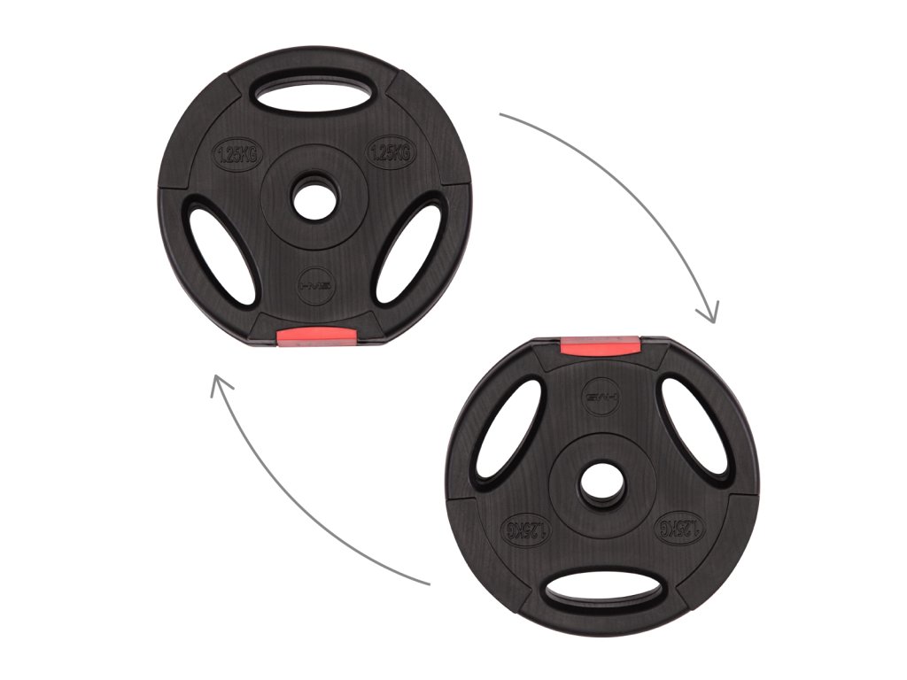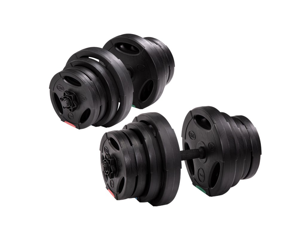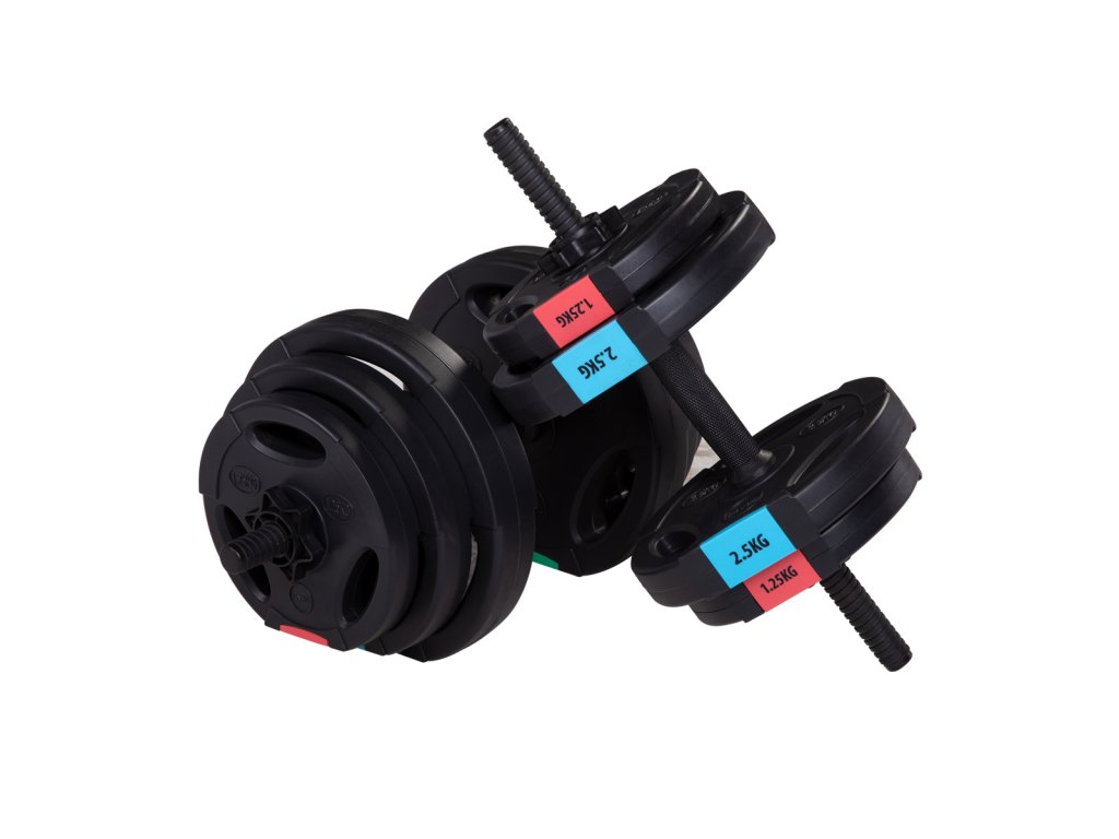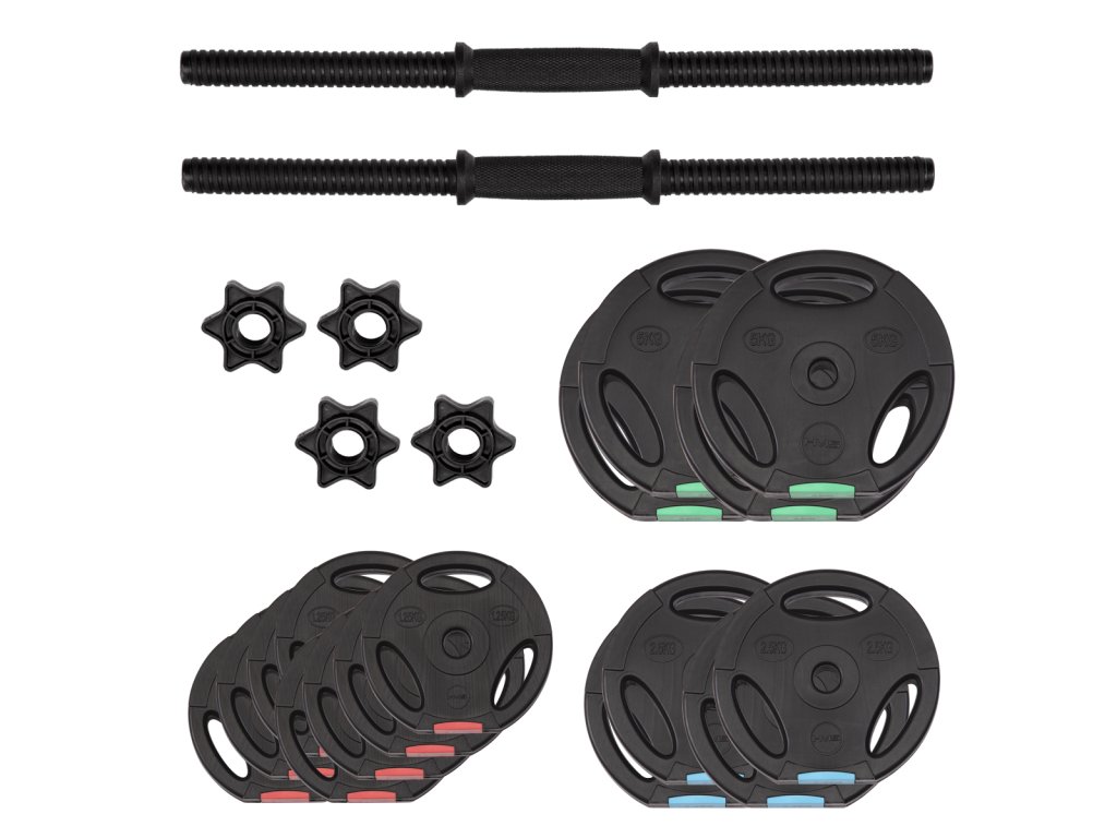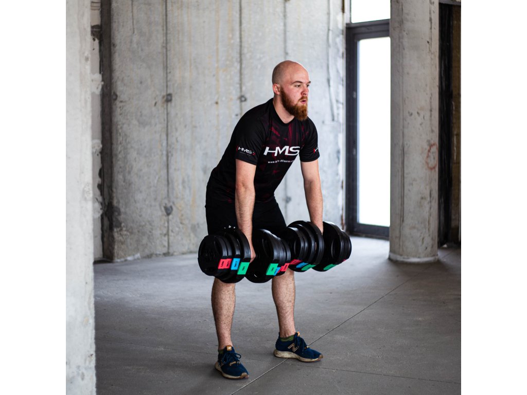 Kompletní sada dvou jednoručních, nakládacích činek o celkové hmotnosti 42 kilogramů, to je HMS SG40. Nakládací činky patří ke klasickému vybavení každé domácí posilovny.