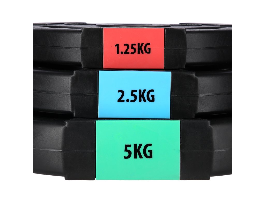 Kotouče jsou vyrobeny z trvdého plastu, který je vyplněn cementem. Trny jednoručních činek jsou opatřeny závitem a závaží je jištěno hvězdicovými maticemi.