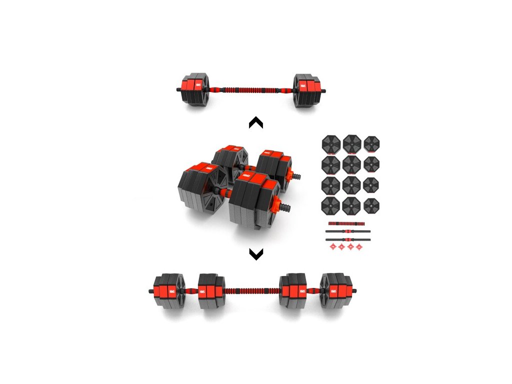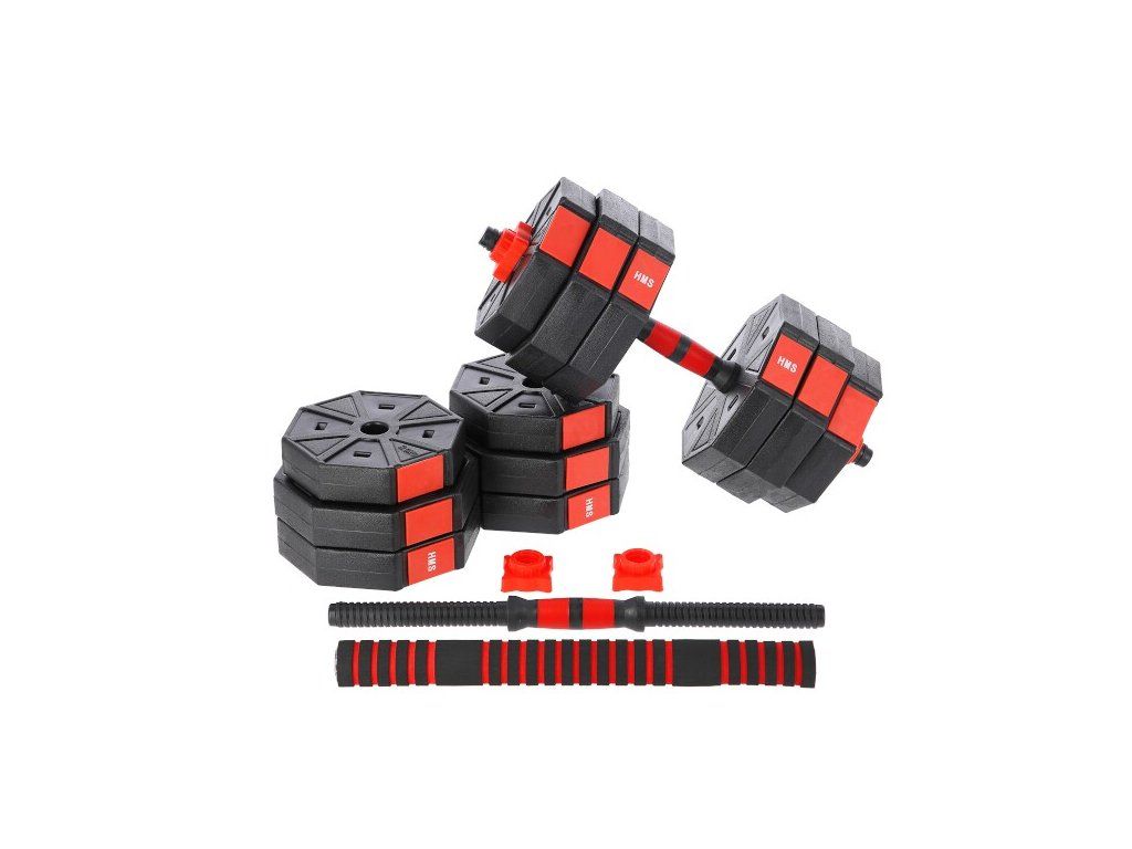 Kompletní nakládací sada dvou jednoručních a jedné obouruční činky o celkové hmotnosti 30 kilogramů, to je HMS SGC30. Kotouče jsou vyrobeny z tvrdého plastu, který je vyplněn cementem. Obouruční osa je spojovacím dílem, do kterého se všroubují hřídele jednoručních činek. Nakládací trny jsou opatřeny závitem a závaží se zajišťuje pomocí hvězdicových matic. Šestihranný tvar kotoučů navíc zamezuje jejich odvalování. Činky se Vám tak nikam neodkutálí a budete je mít vždy tam, kde jste je odložili. Nakládací činky patří ke klasickému vybavení každé domácí posilovny.