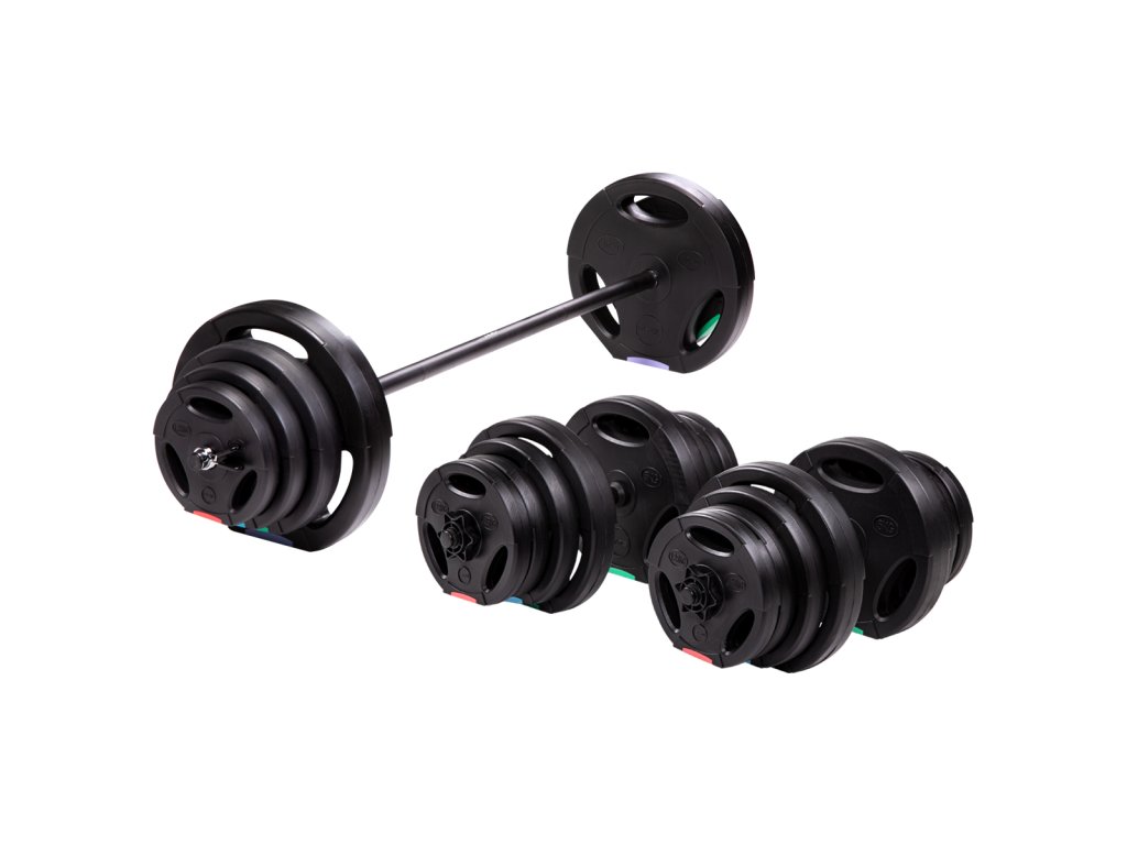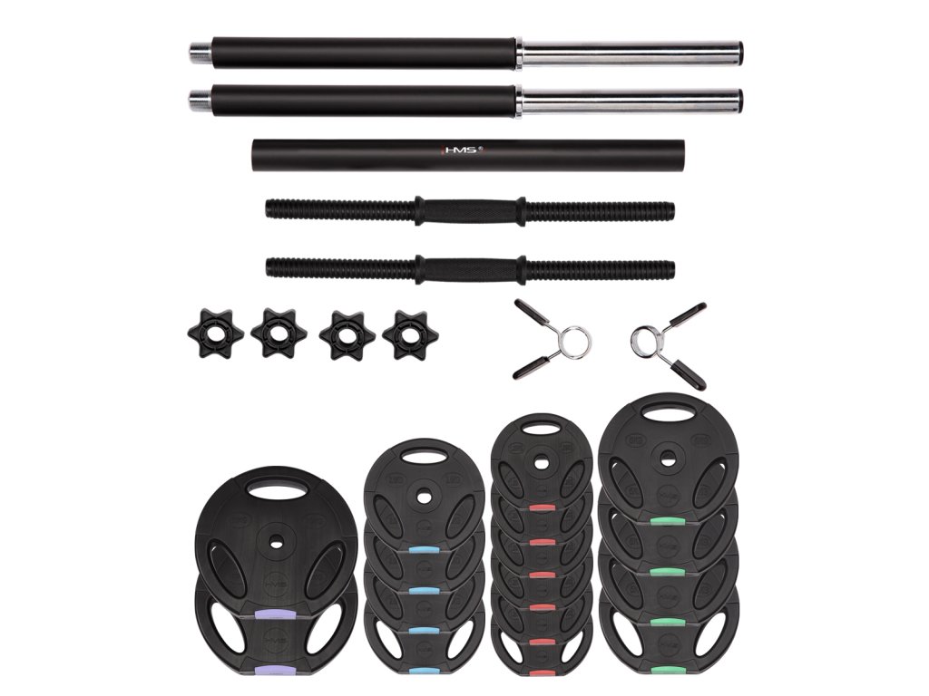 Kompletní nakládací sada dvou jednoručních a jedné obouruční činky o celkové hmotnosti 62 kilogramů, to je HMS SGSP60. Nakládací činky patří ke klasickému vybavení každé domácí posilovny.