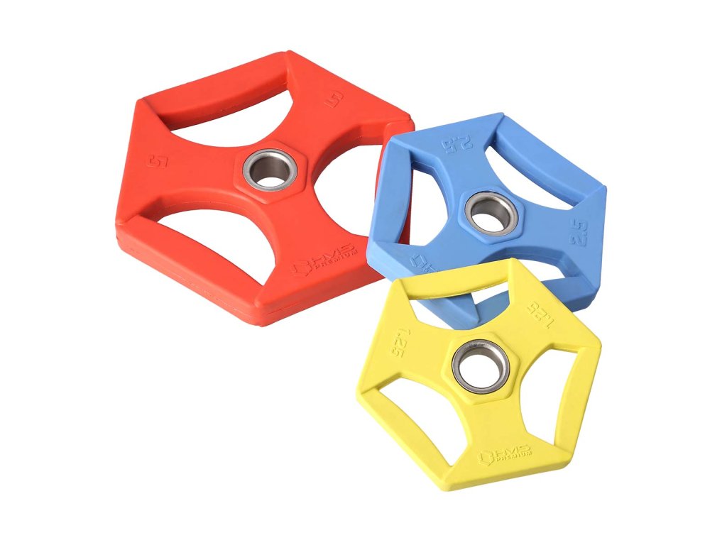 Samotné kotouče mají tvar šestiúhelníku, takže se činka po odložení neodvalí. Otvory v kotoučích slouží jako madla a lze je tak použít i samostatně k funkčnímu tréninku.