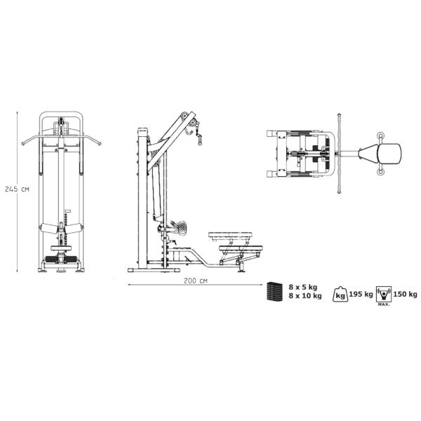 Horní a dolní kladka MARBO MP-U211 je nekompromisní, profesionální vybavení pro Vaší posilovnu. Pro výrobu byly zvoleny ocelové profily 120x60x3mm a 80x40x3mm, které zaručují nečekanou trvanlivost. Zátěž tvoří 8ks 5kg a 8ks 10kg cihel. Celková váha závaží dodávána se strojem je tedy 120kg. Horní kladka je ve výšce 230cm a tak mohou na stroji cvičit i jedinci o výšce 200cm. Tichý chod zajištuje zakrytování černým plastem, z přední části je kryt opatřen průhledem pro snadné nastavení požadovaného počtu cihel. U dolní kladky máte k dispozici pogumovanou plochu pro odložení adaptéru po cvičení, u horní kladky plní stejnou funkci odkládací háky. Polstrovaní je ze syntetické kůže sešité režnou nití značky COATS vyplněné tvrdou pěnou, to celé ja na 3mm hrubé, ocelové desce. Pro věčí efektivitu cvičení je kladka vybavena drážkovanými opěrami nohou. Zarážka nohou je nastavitelná do tří poloh. Sedátko má dvě polohy. Zadní, nízkou pro trénink na spodní kladce a přední, vysokou pro trénink na kladce vrchní. Stroj je navíc opatřen velikou samolepkou, která instruuje cvičence, jaké cviky jdou na stroji provádět a které skupiny svalů daný cvik posiluje.