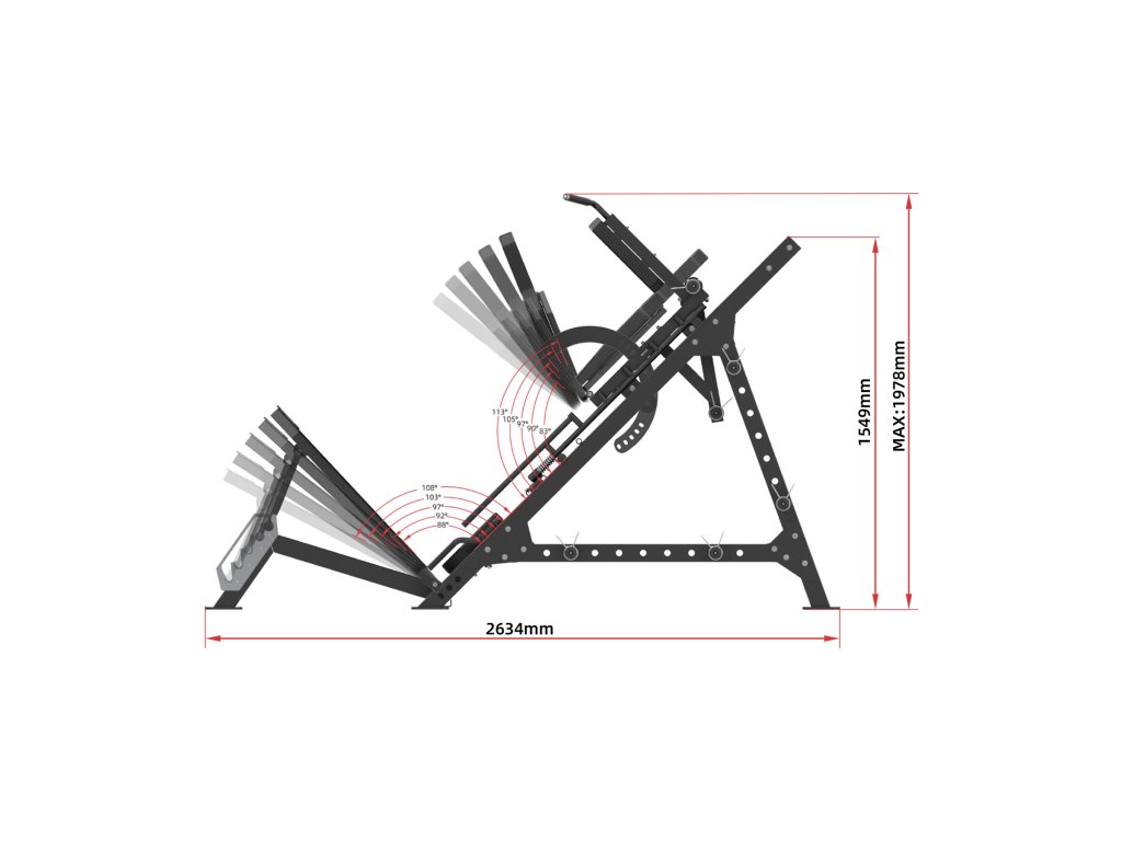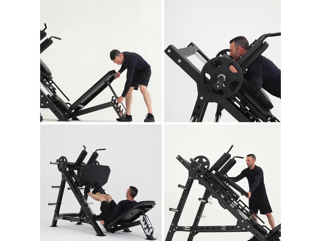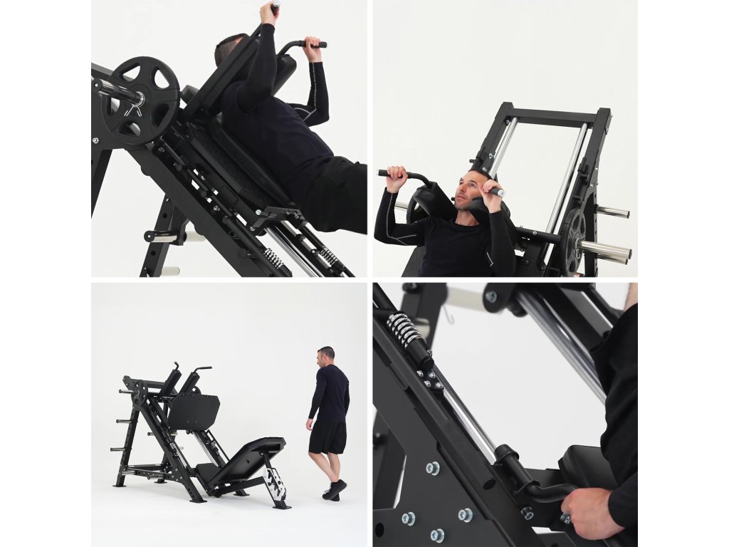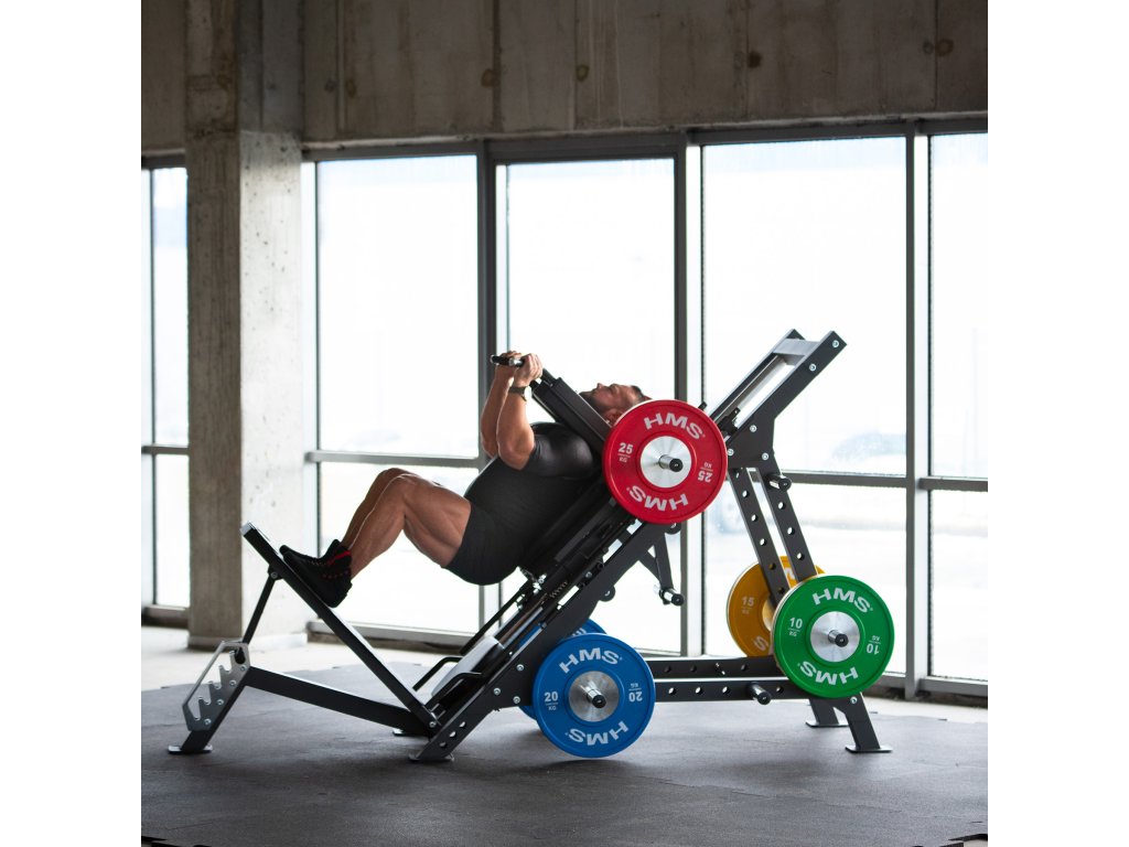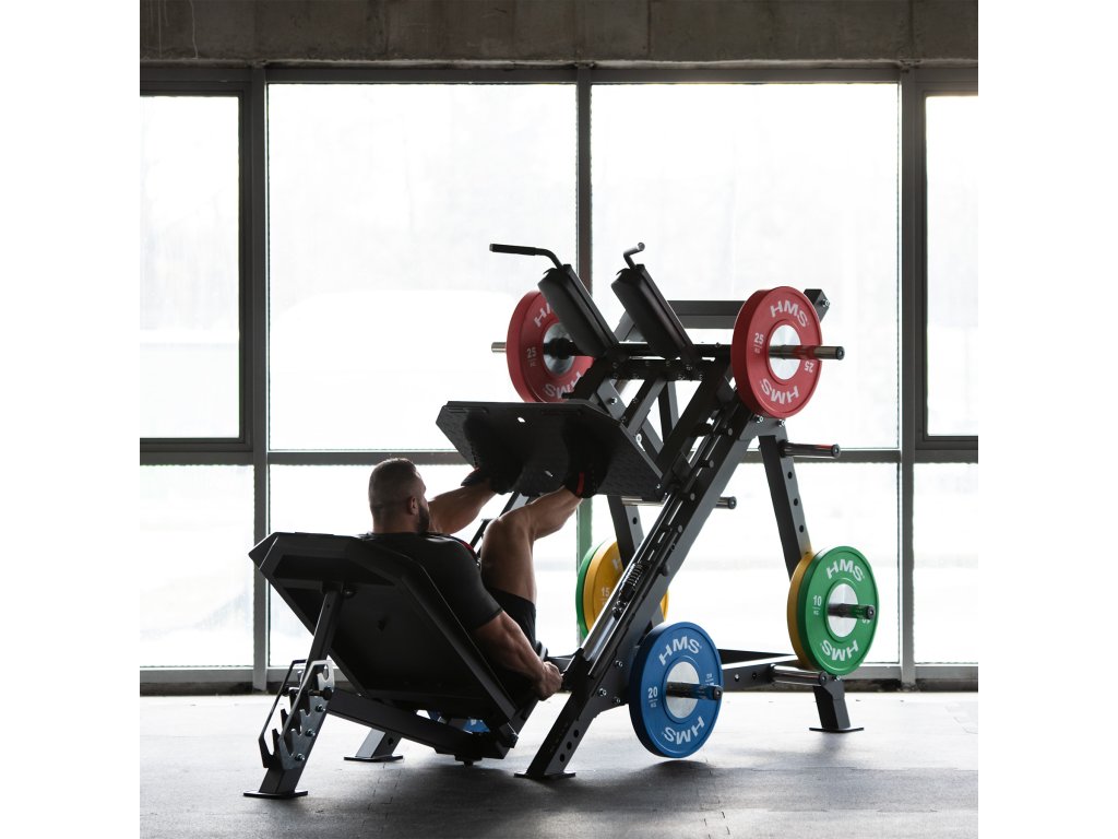 HMS LP3175 je Leg-press a Hacken dřep spojený do jednoho zařízení.