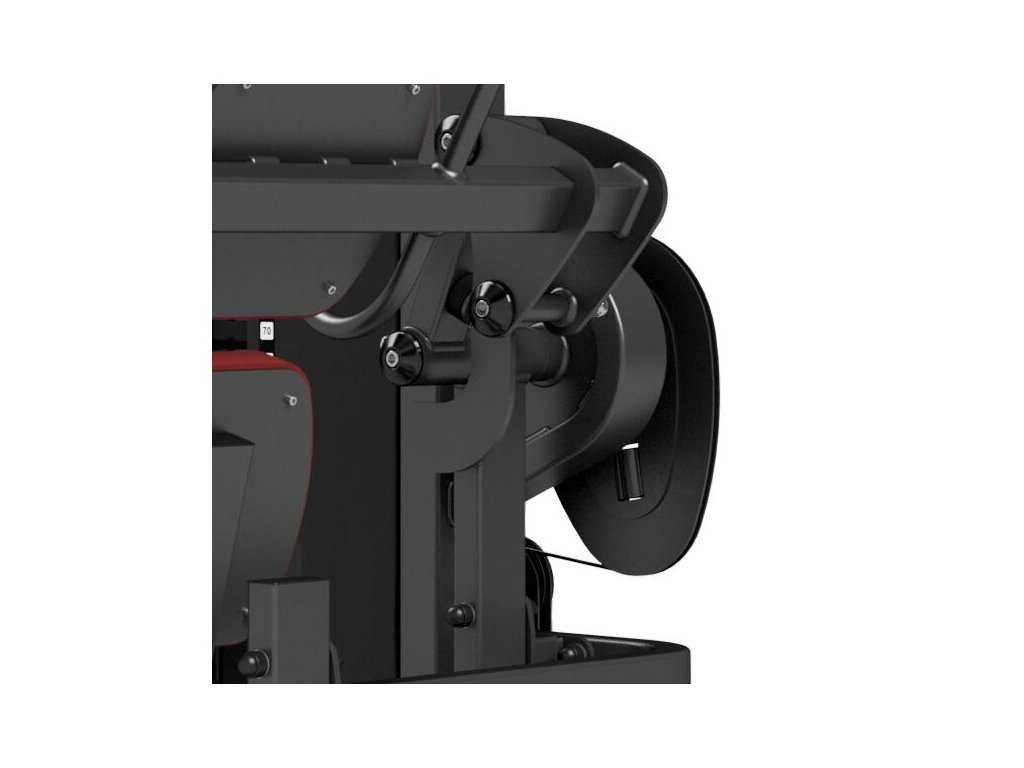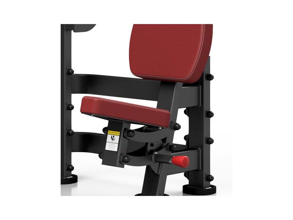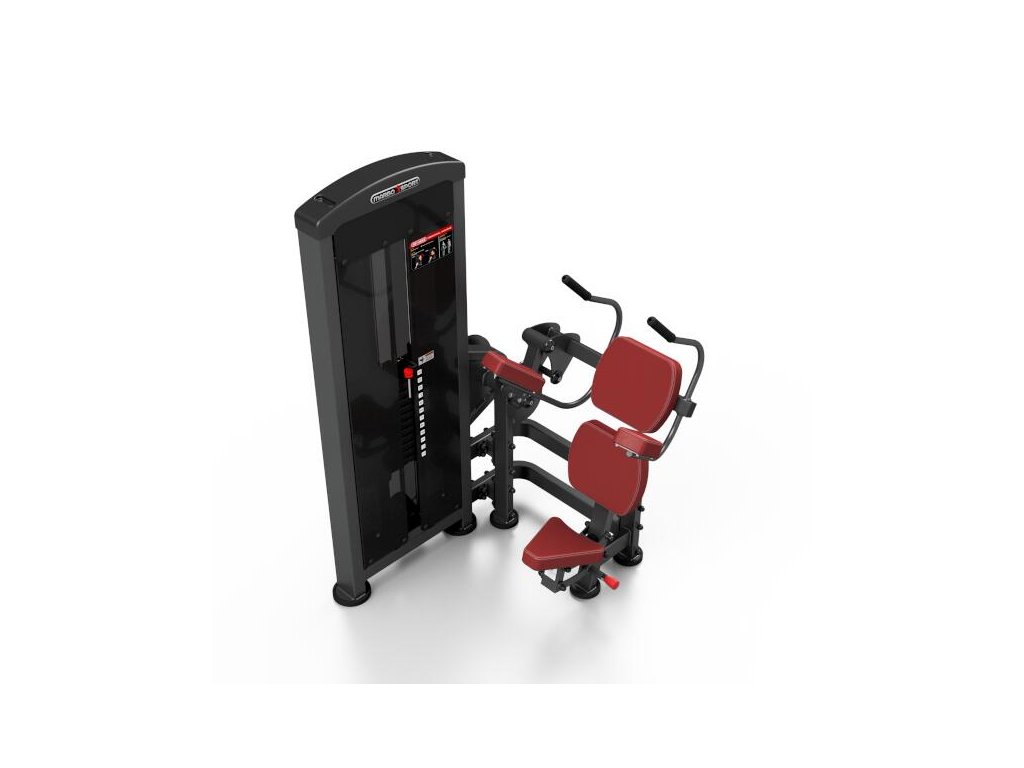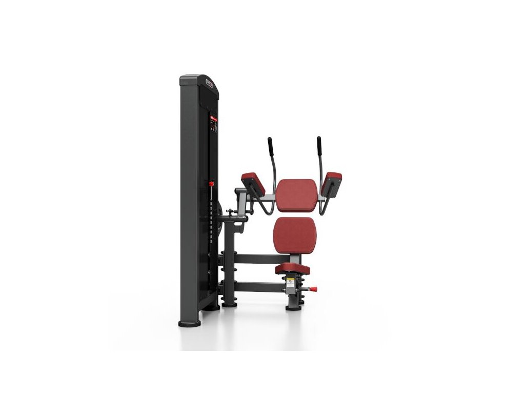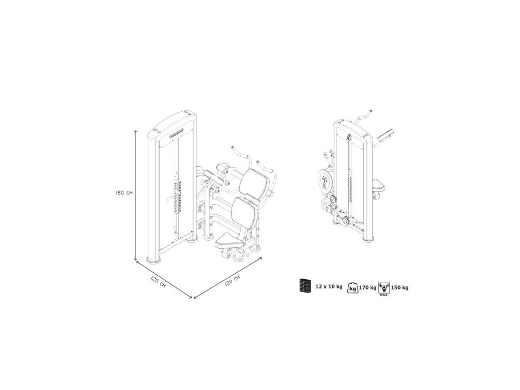 Stroj na posílení břišních svalů MARBO MP-U223 je nekompromisní, profesionální vybavení pro Vaší posilovnu. Pro výrobu byly zvoleny ocelové profily 120x60x3mm a 80x40x3mm, které zaručují nečekanou trvanlivost. Zátěž tvoří 12ks 10kg cihel. Celková váha závaží dodávána se strojem je tedy 120kg a je možné ji rozšířit až na 160kg. Regulace výšky sedadla je nastavitelná ve čtyřech úrovních za použití červeného, pneumatického jistícího kolíku. Napínaní lanek se provádí regulací 4 šroubů na hlavním vodícím kole. Odpadá tak složité rozebírání stroje. Polstrovaní je ze syntetické kůže sešité režnou nití značky COATS vyplněné tvrdou pěnou, to celé ja na 3mm hrubé, ocelové desce. Tichý chod zajištuje zakrytování černým plastem, z přední části je kryt opatřen průhledem pro snadné nastavení požadovaného počtu cihel. Stroj je navíc opatřen velikou samolepkou, která instruuje cvičence, jaké cviky jdou na stroji provádět a které skupiny svalů daný cvik posiluje.